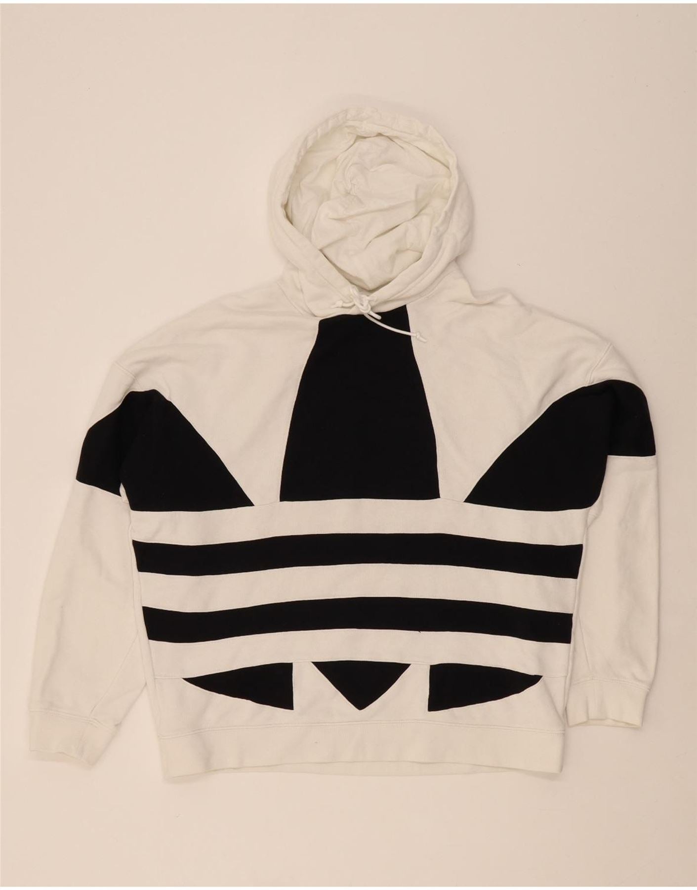 ADIDAS Womens Oversized Graphic Hoodie Jumper UK 16 Large White Cotton