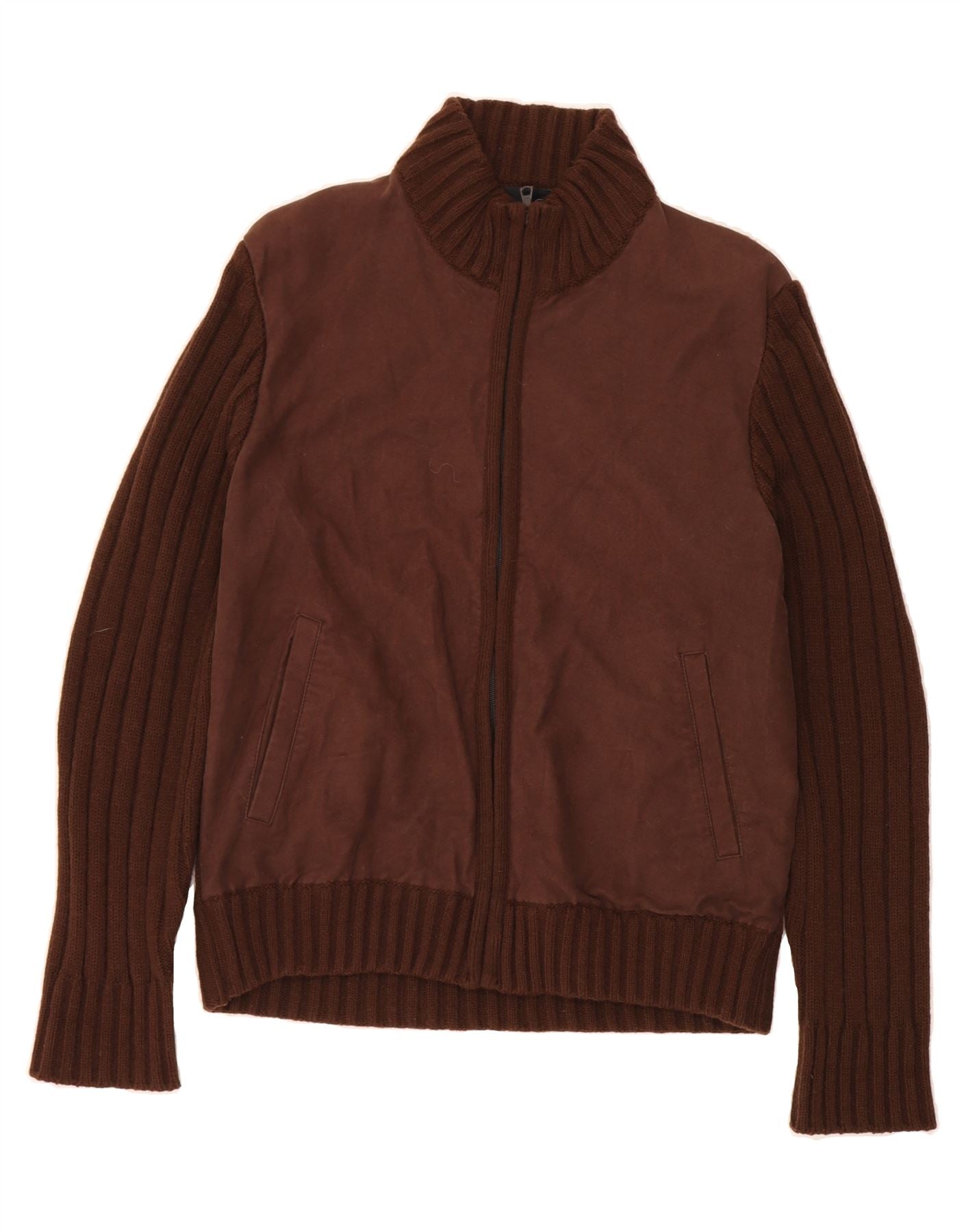 - AI Description: This pre-owned Gas cardigan is a classic menswear staple. Crafted from a warm wool blend (56% Lana wool, 28% polyacryl, 16% acrylic) in a versatile brown knit, it features a full zip closure, long sleeves and a collared neckline. The regular fit ensures comfortable wear. Accented with a zip and pockets, it presents a smart, casual style. Labelled size L. In excellent condition with minor visible wear throughout. Recommended retail price: £45.00.