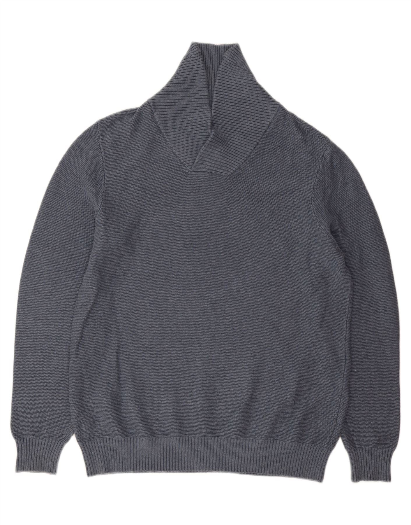 JOHN LEWIS Mens Shawl Neck Jumper Sweater Large Blue Cotton