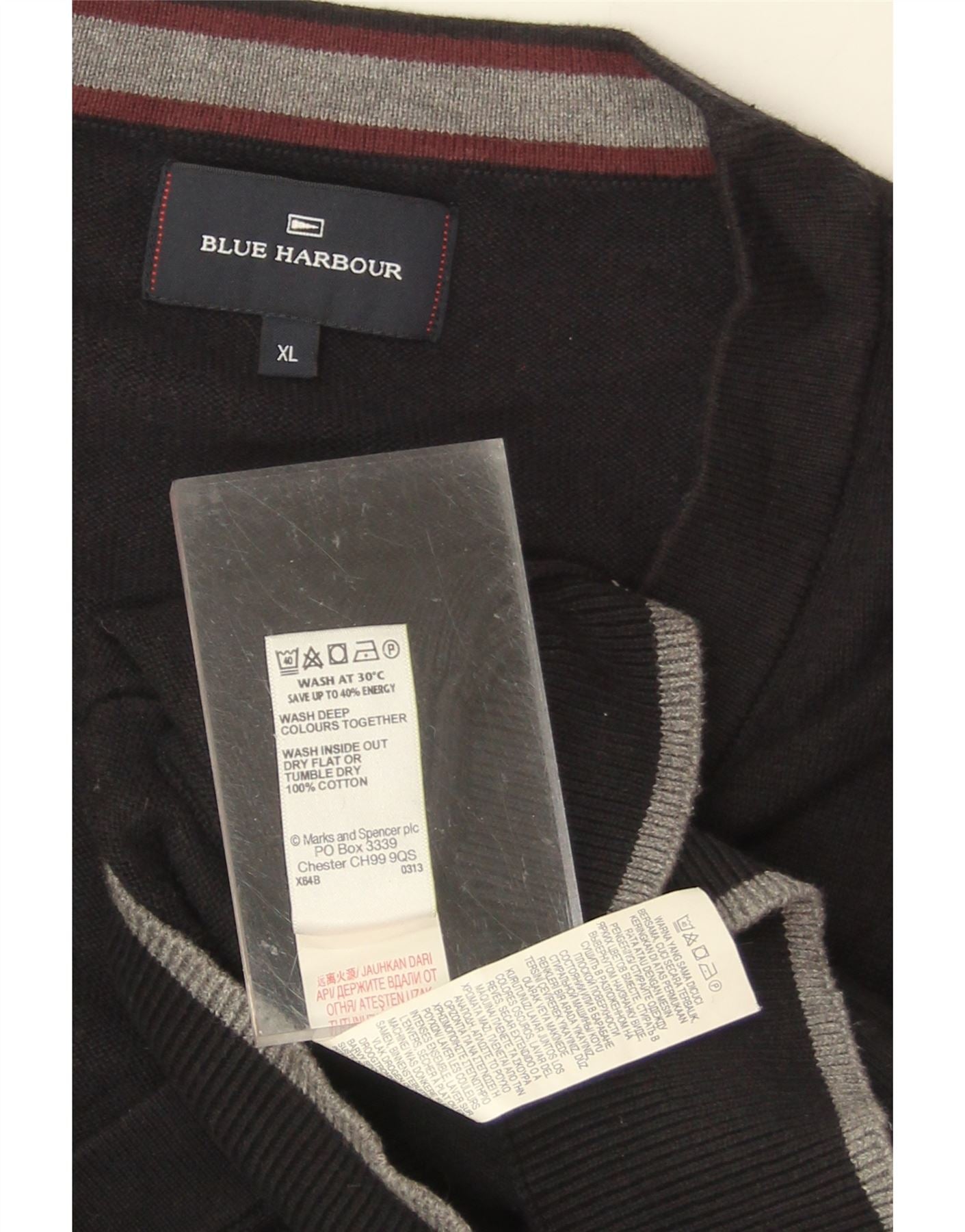 MARKS & SPENCER Mens Blue Harbour Cardigan Sweater XL Black Cotton