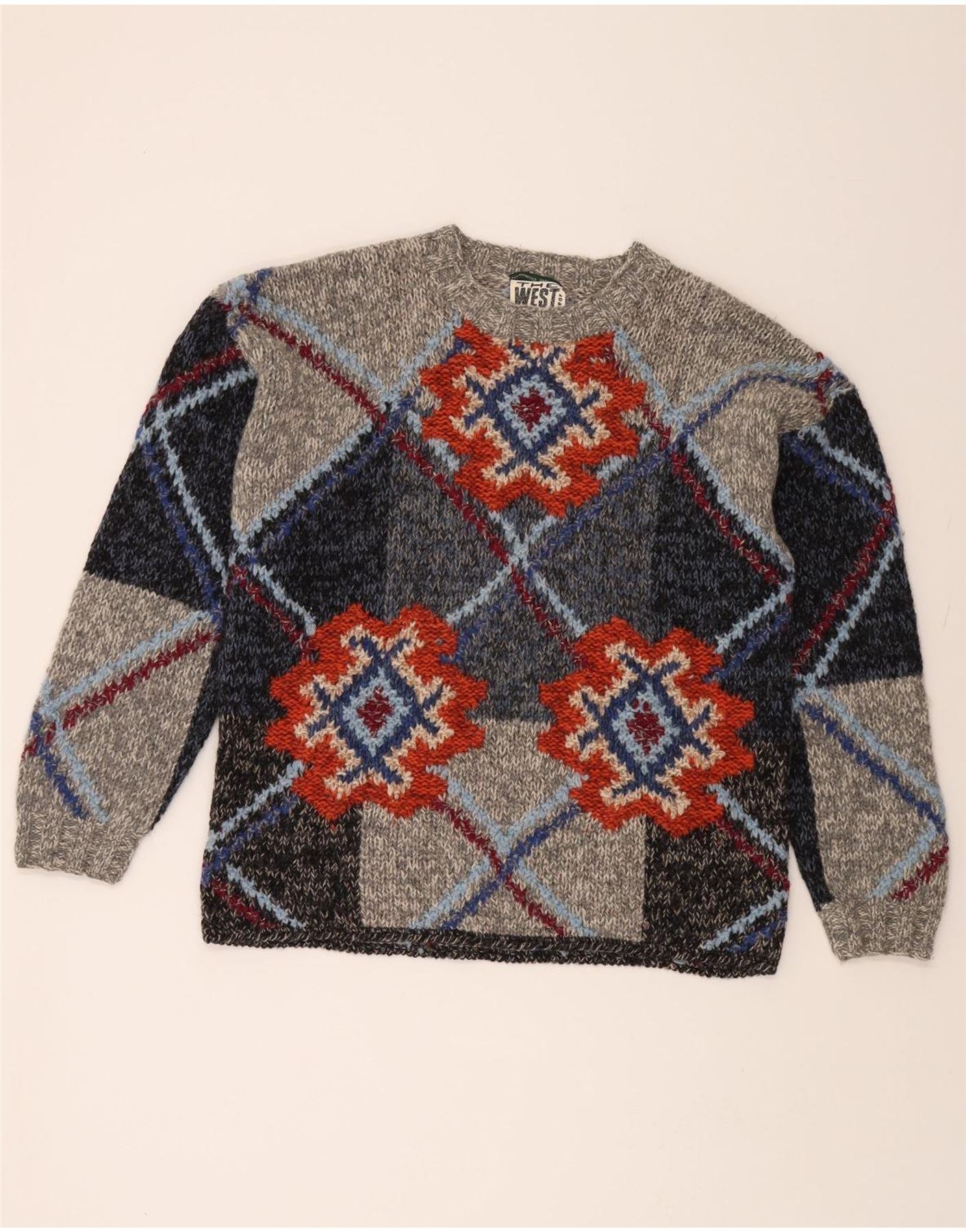 THE WEST END Mens Crew Neck Jumper Sweater Large Grey Colourblock Wool