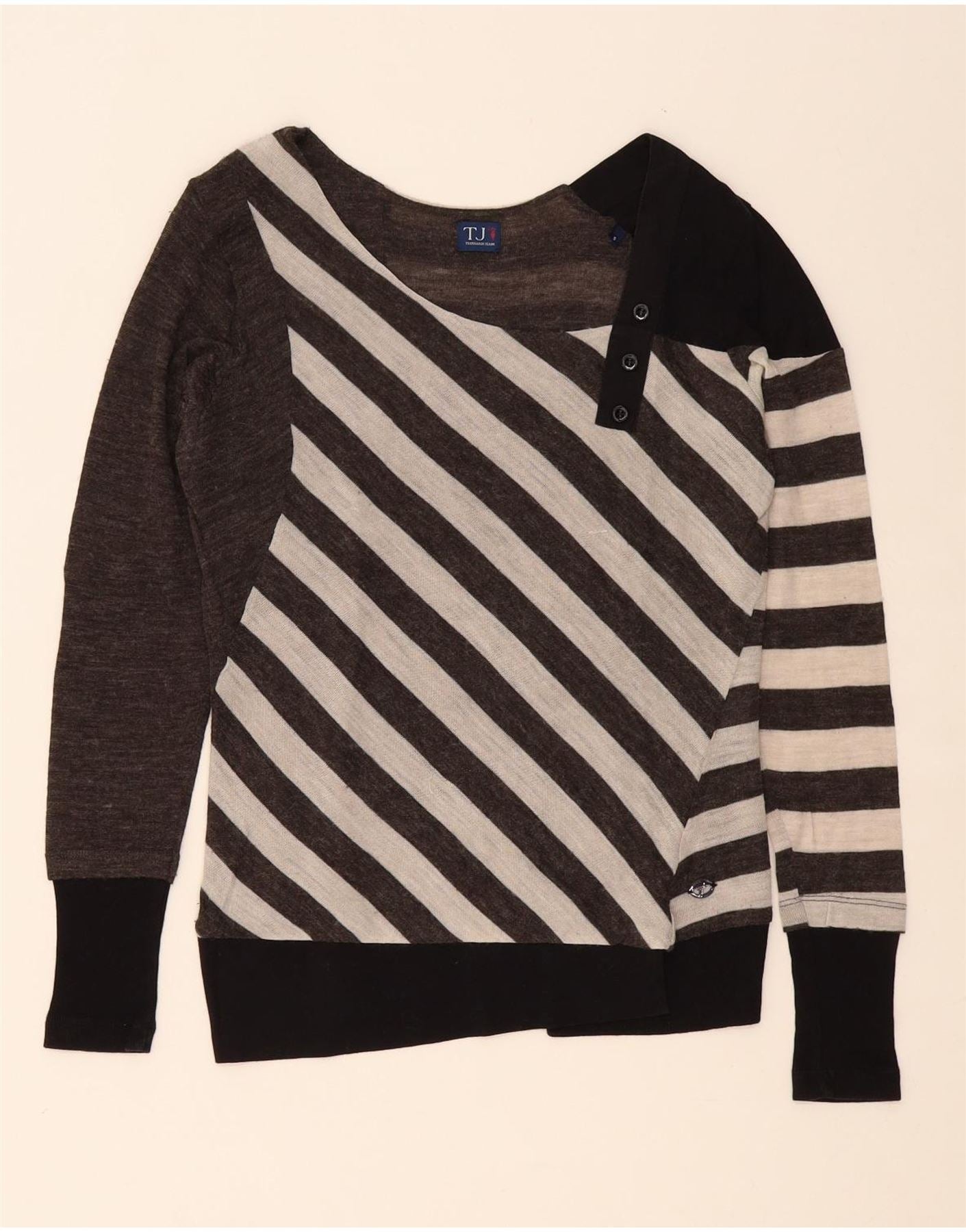 TRUSSARDI JEANS Womens Boat Neck Jumper Sweater UK 10 Small Grey Striped