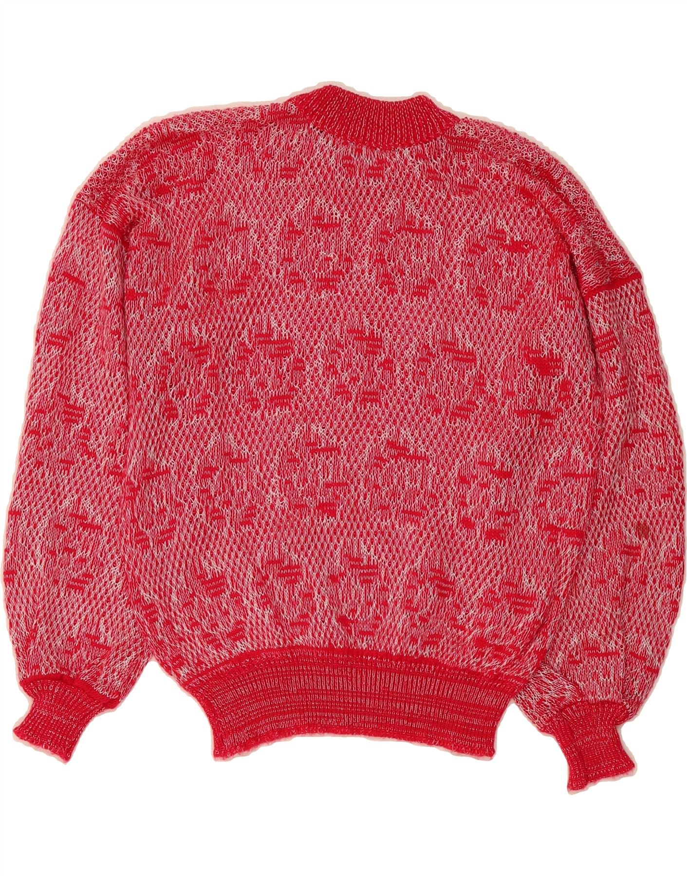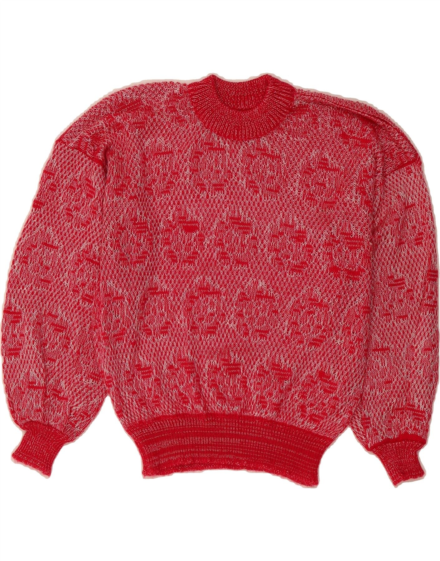 VINTAGE Womens Abstract Pattern Crew Neck Jumper Sweater UK 14 Medium Red