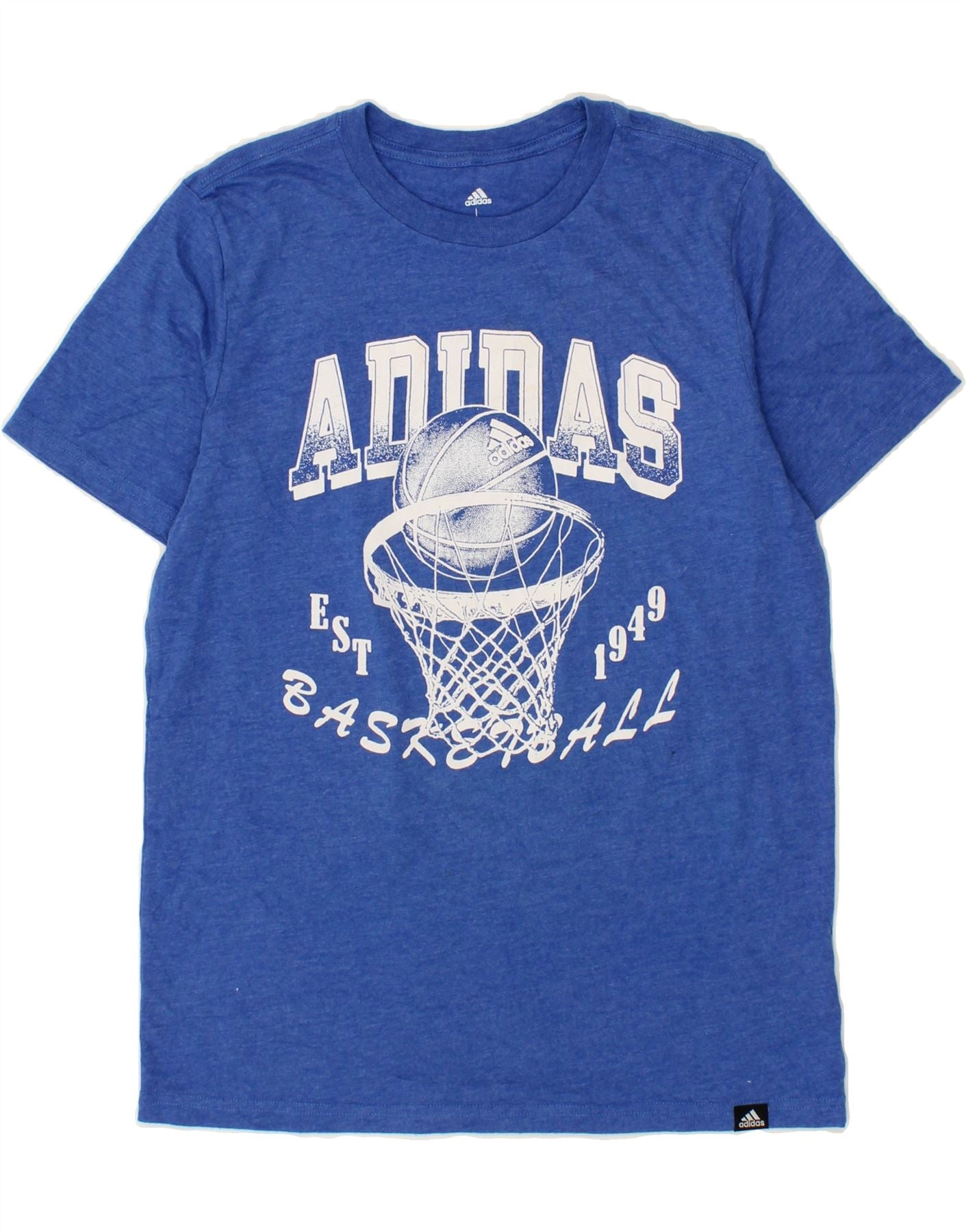 ADIDAS Boys Regular Fit Graphic T-Shirt Top 14-15 Years Large Blue Cotton