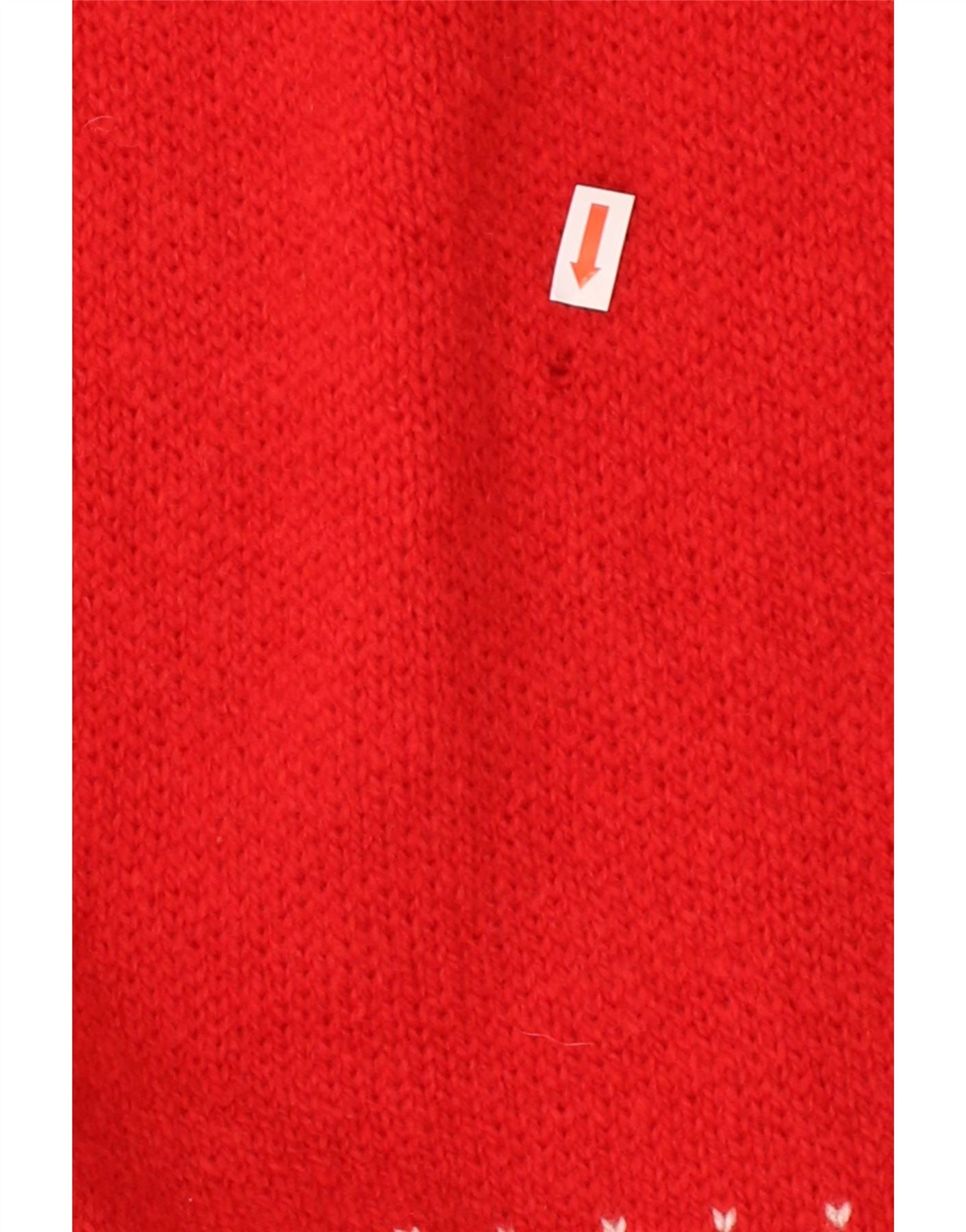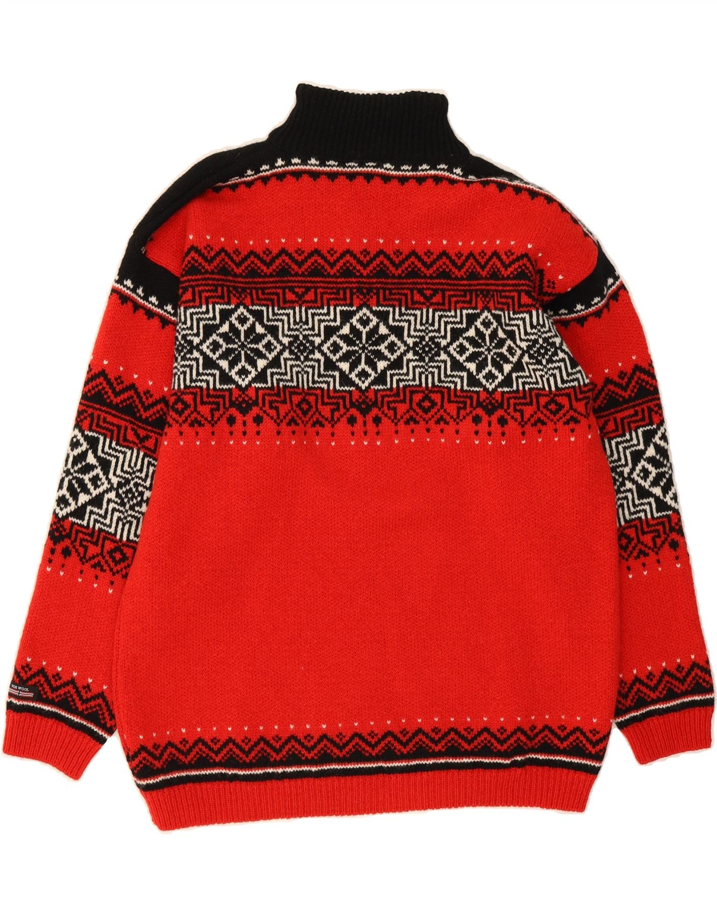 NORWOOL Mens Zip Neck Jumper Sweater XL Red Fair Isle Wool