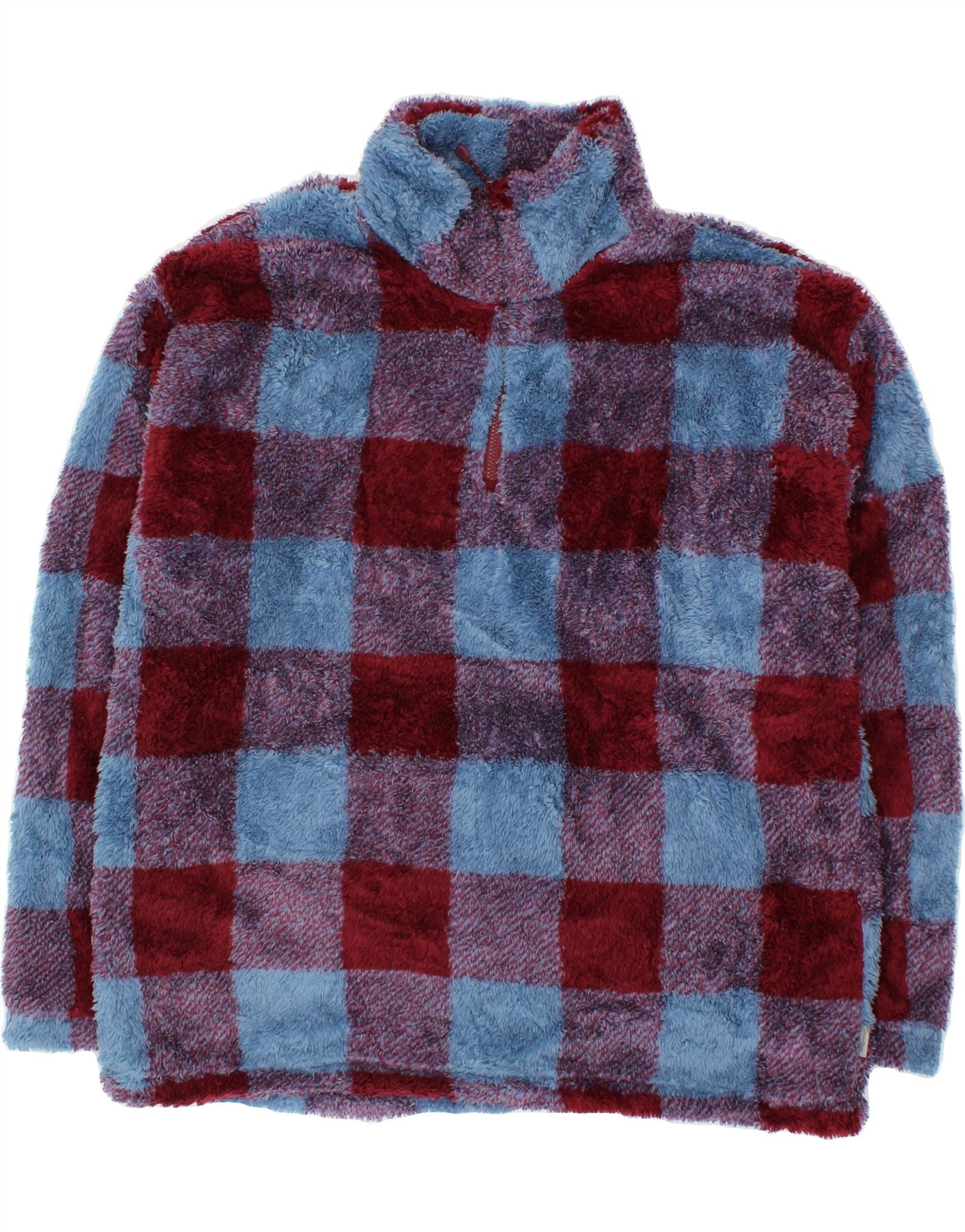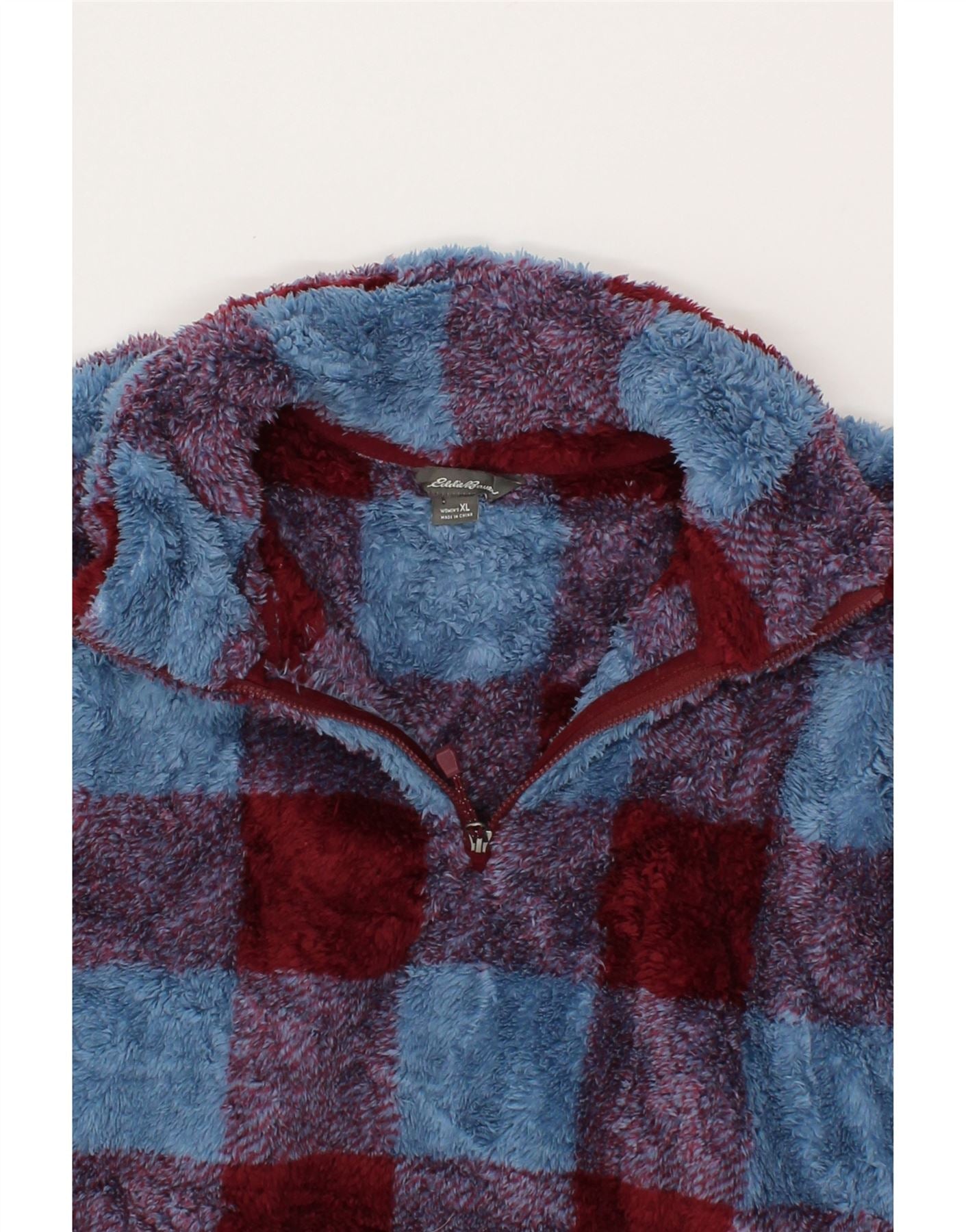 EDDIE BAUER Womens Zip Neck Fleece Jumper UK 18 XL Blue Check Polyester