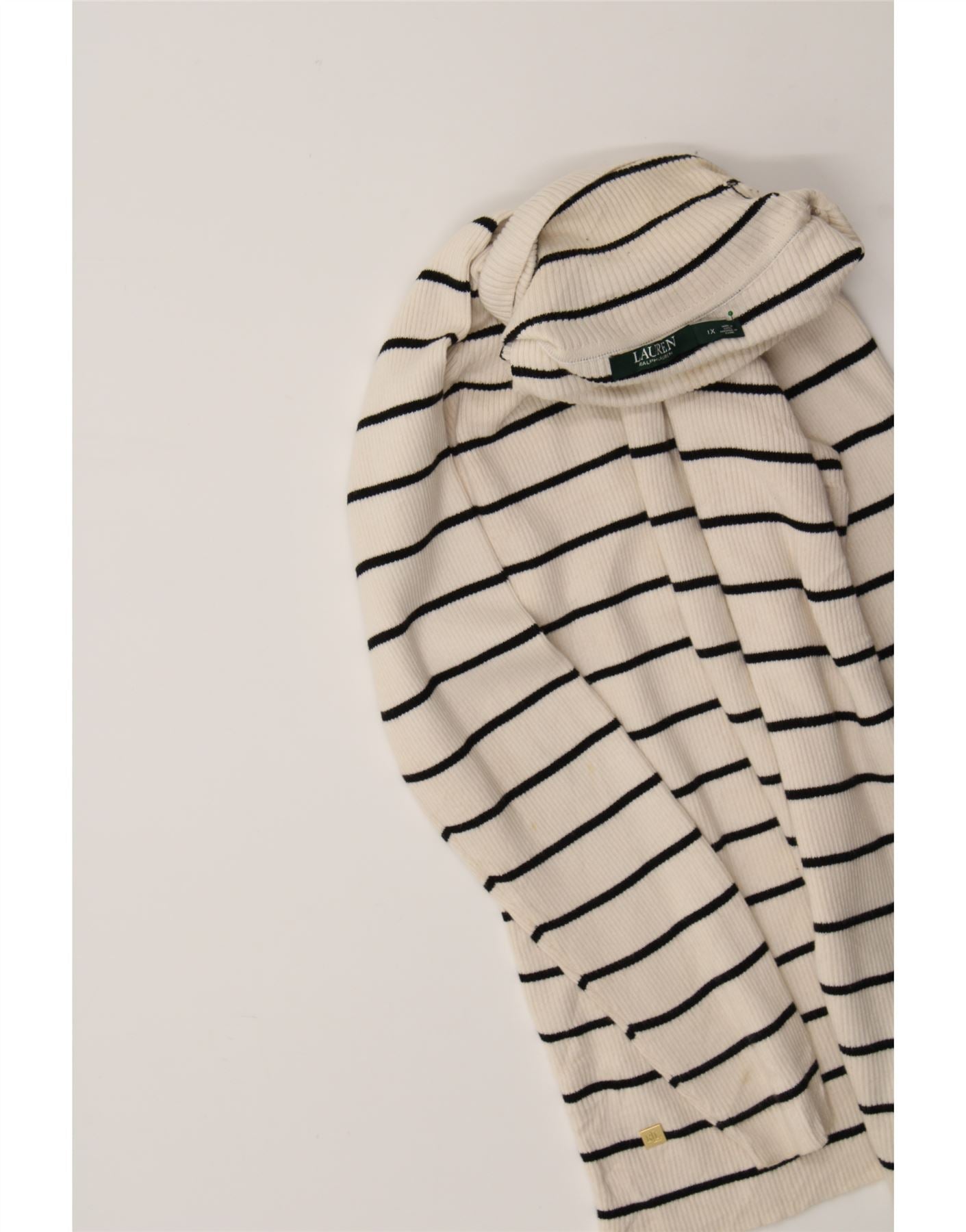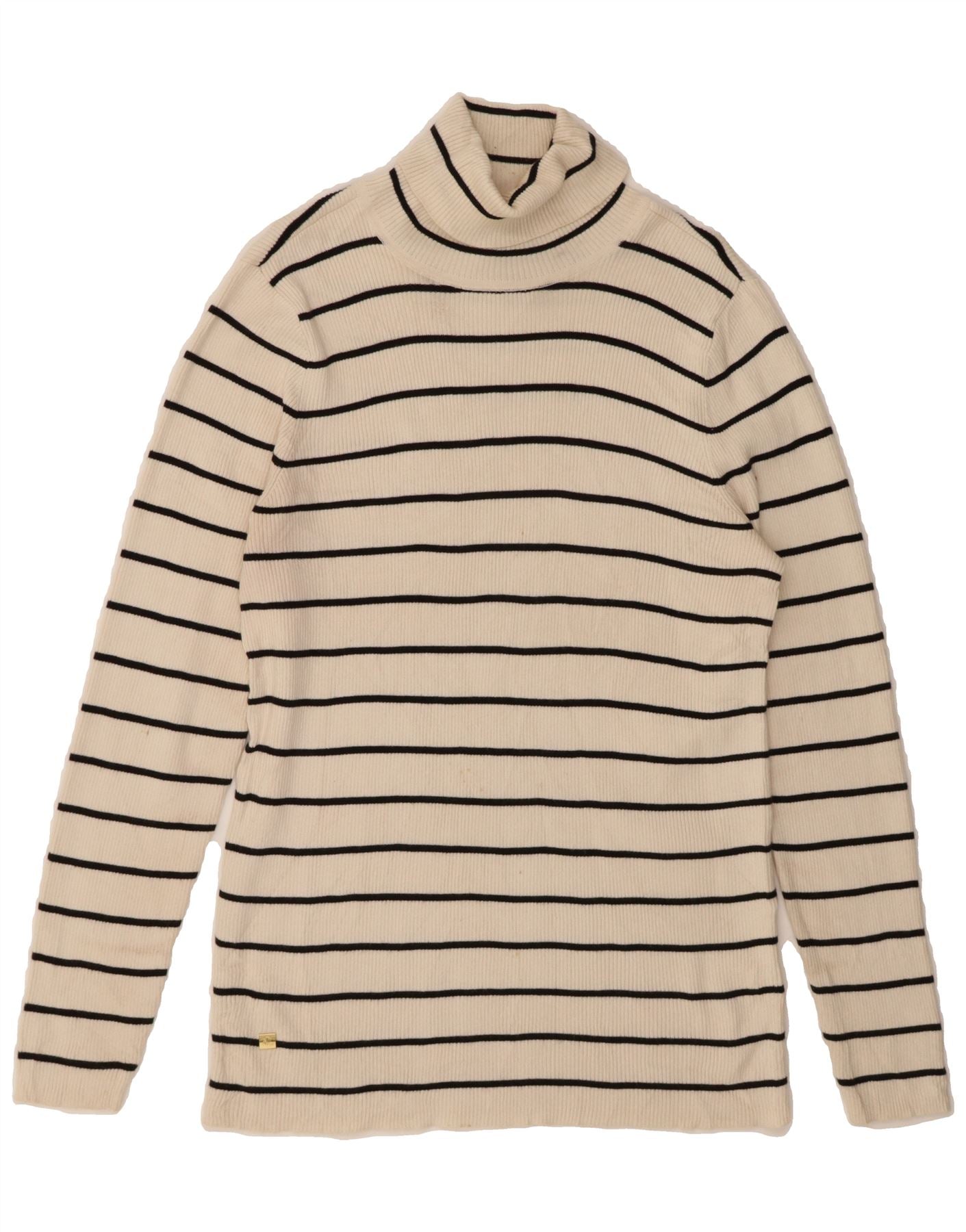 RALPH LAUREN Womens Roll Neck Jumper Sweater UK 18 XL Off White Striped