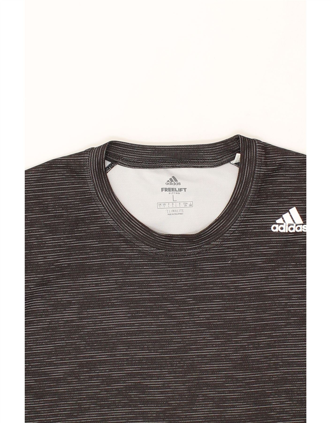 ADIDAS Mens Climalite T-Shirt Top Large Grey Pinstripe Polyester