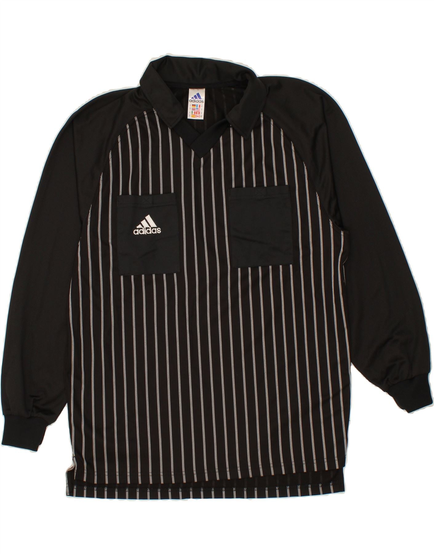 ADIDAS Mens Long Sleeve Polo Shirt Medium Black Striped Polyester