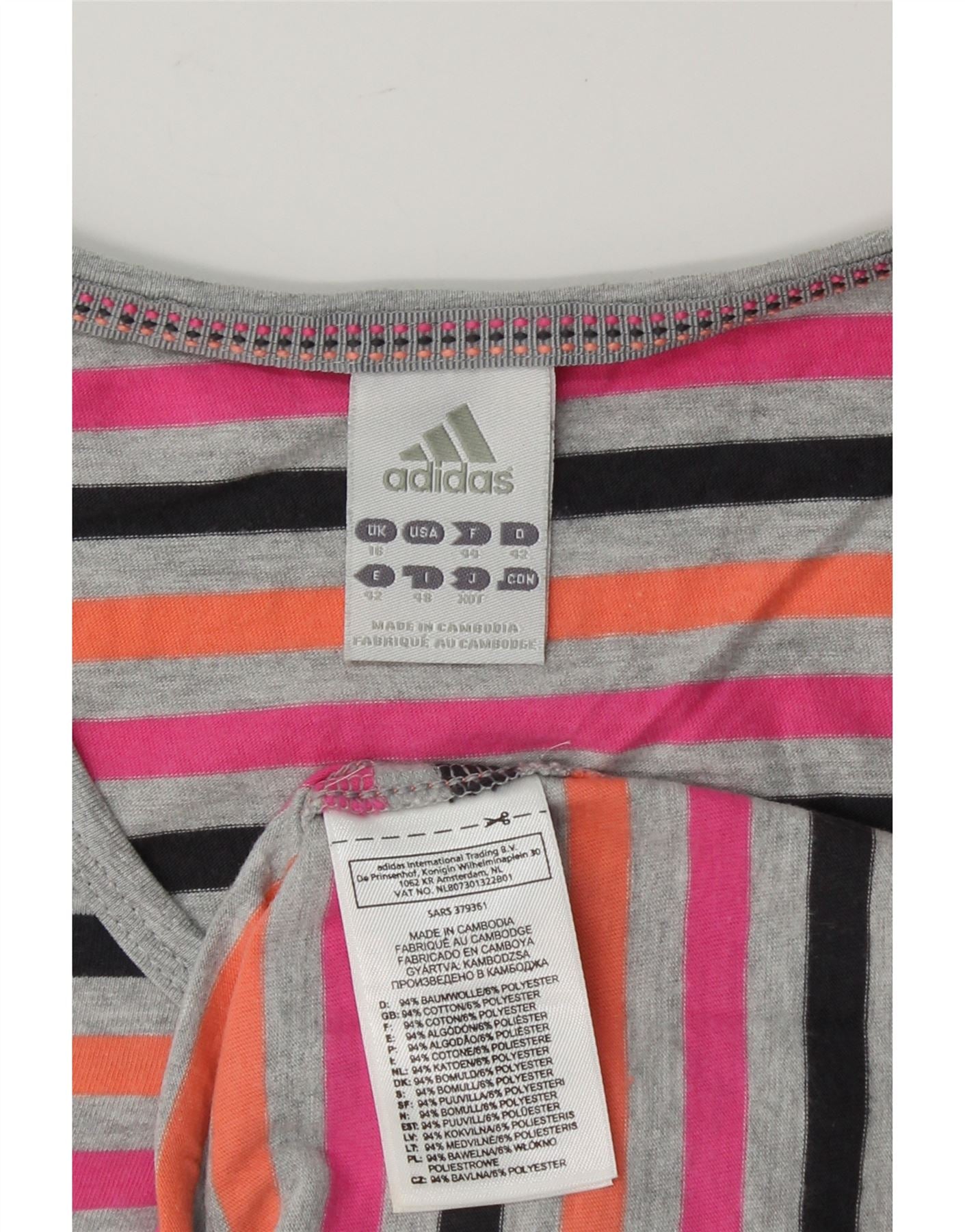 ADIDAS Womens T-Shirt Top UK 16 Large Multicoloured Striped Cotton