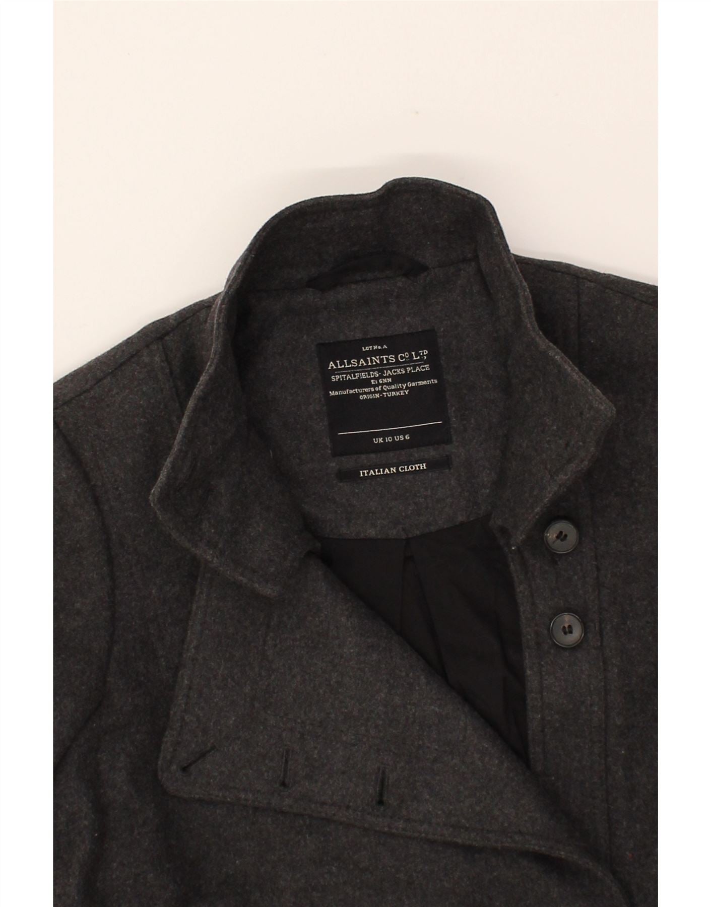 ALL SAINTS Womens Double Breasted Coat UK 10 Small Grey Wool