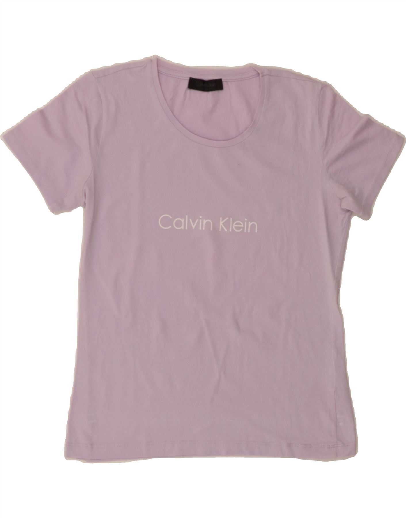 CALVIN KLEIN Girls Graphic T-Shirt Top 11-12 Years Large Purple Cotton