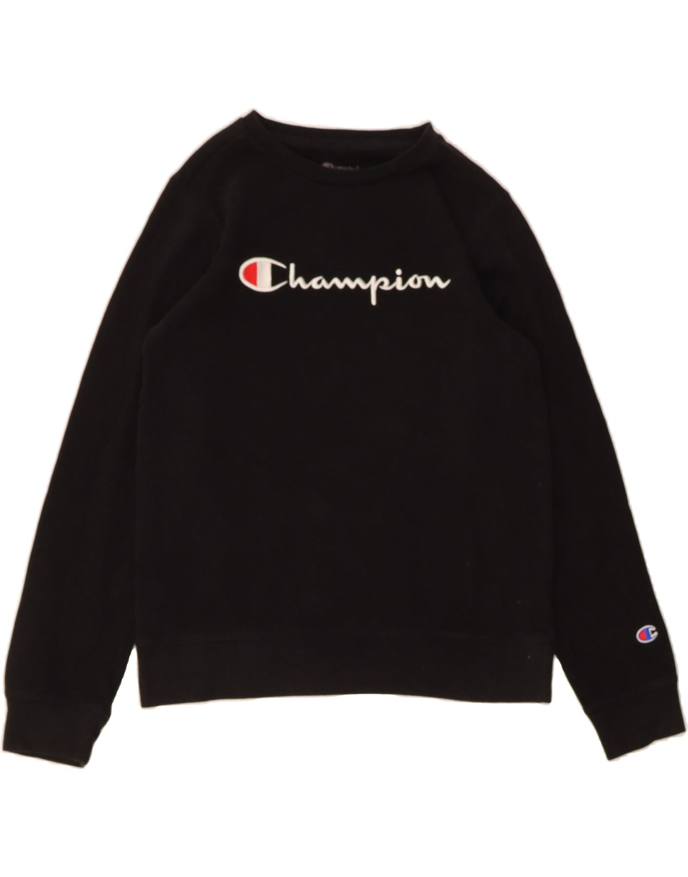 CHAMPION Girls Graphic Sweatshirt Jumper 13-14 Years XL Black Cotton