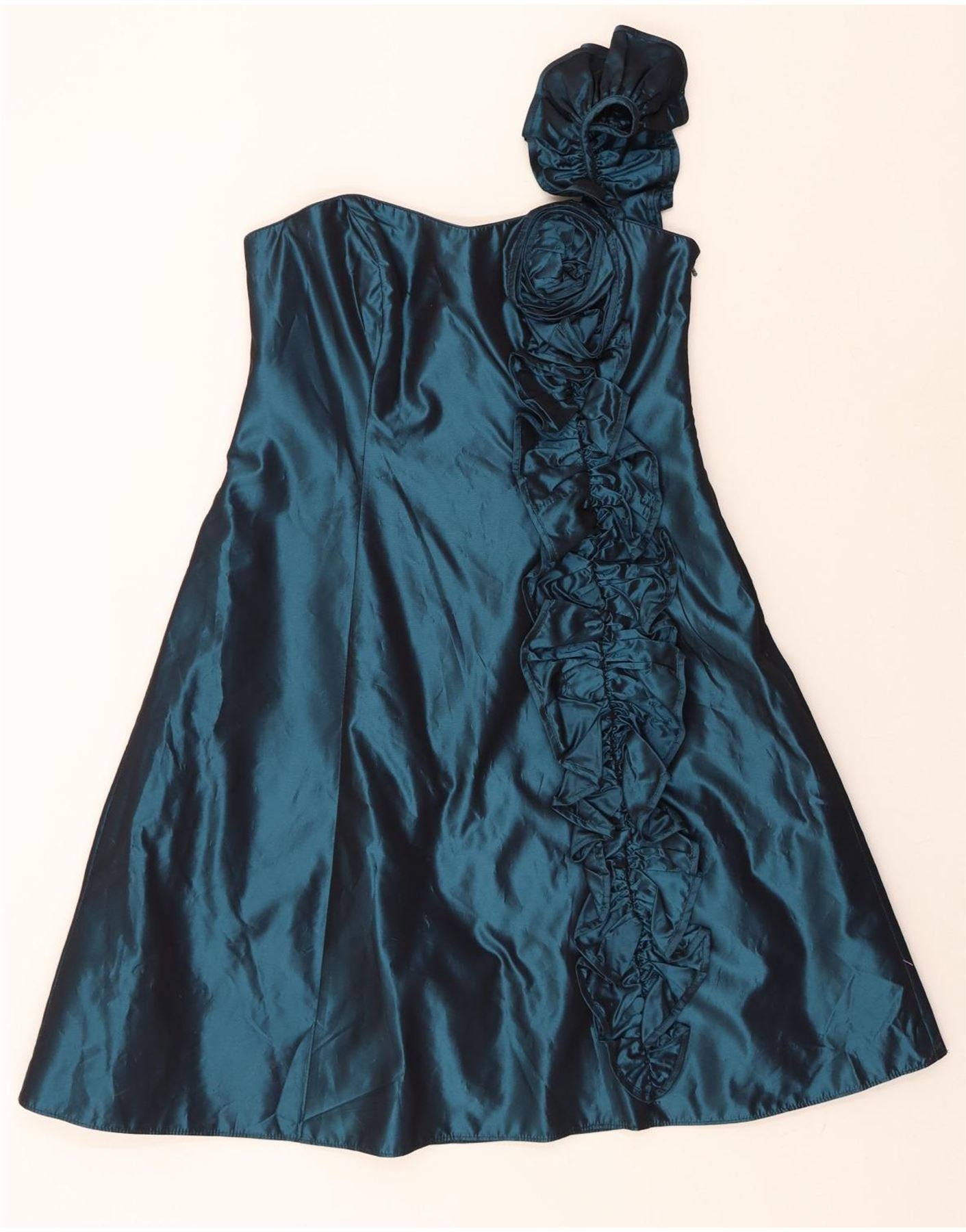 DEBUT Womens Ruffle One Shoulder Dress UK 14 Medium Green Acetate