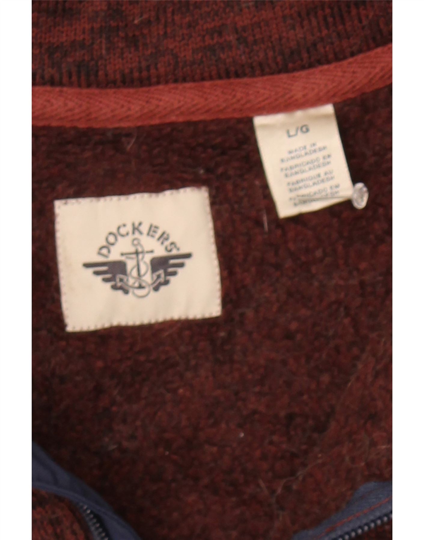 DOCKERS Mens Zip Neck Sweatshirt Jumper Large Brown Flecked Polyamide