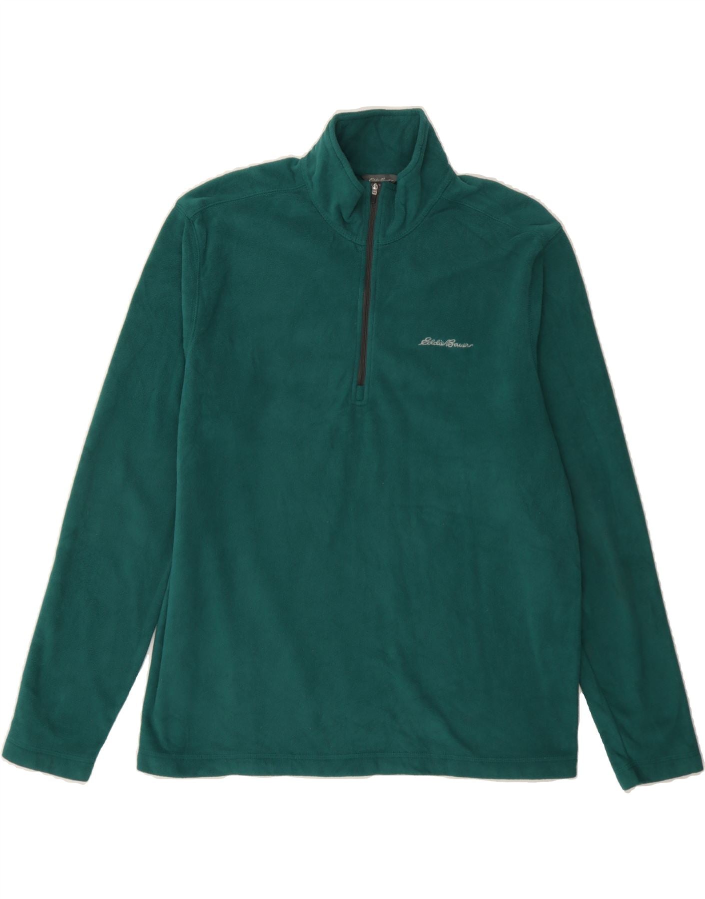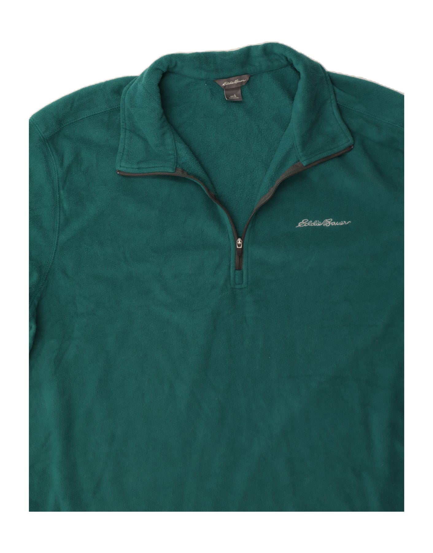 EDDIE BAUER Mens Zip Neck Fleece Jumper Large Green Polyester