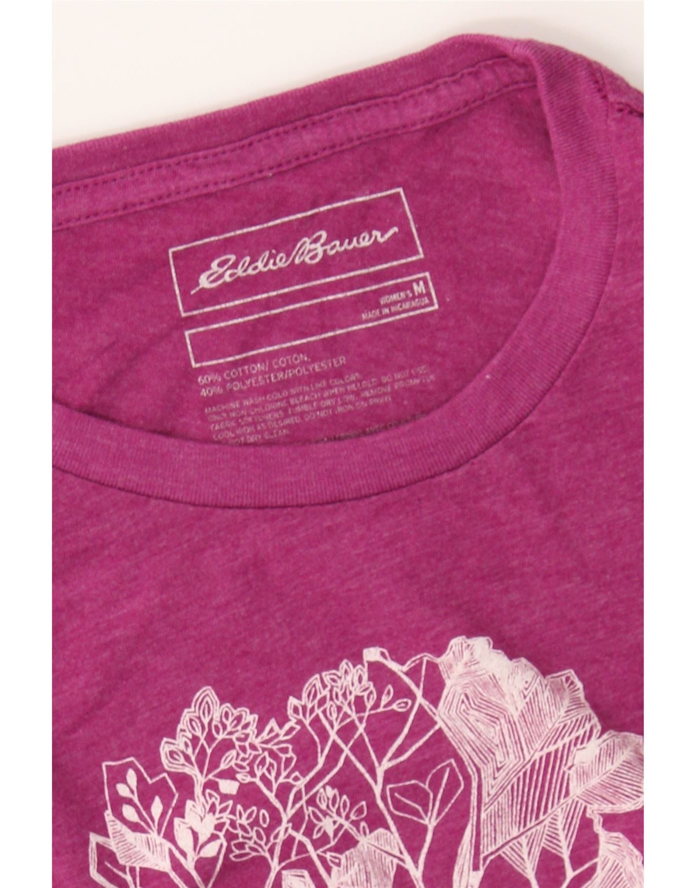 EDDIE BAUER Womens Graphic T-Shirt Top UK 12 Medium Pink Cotton