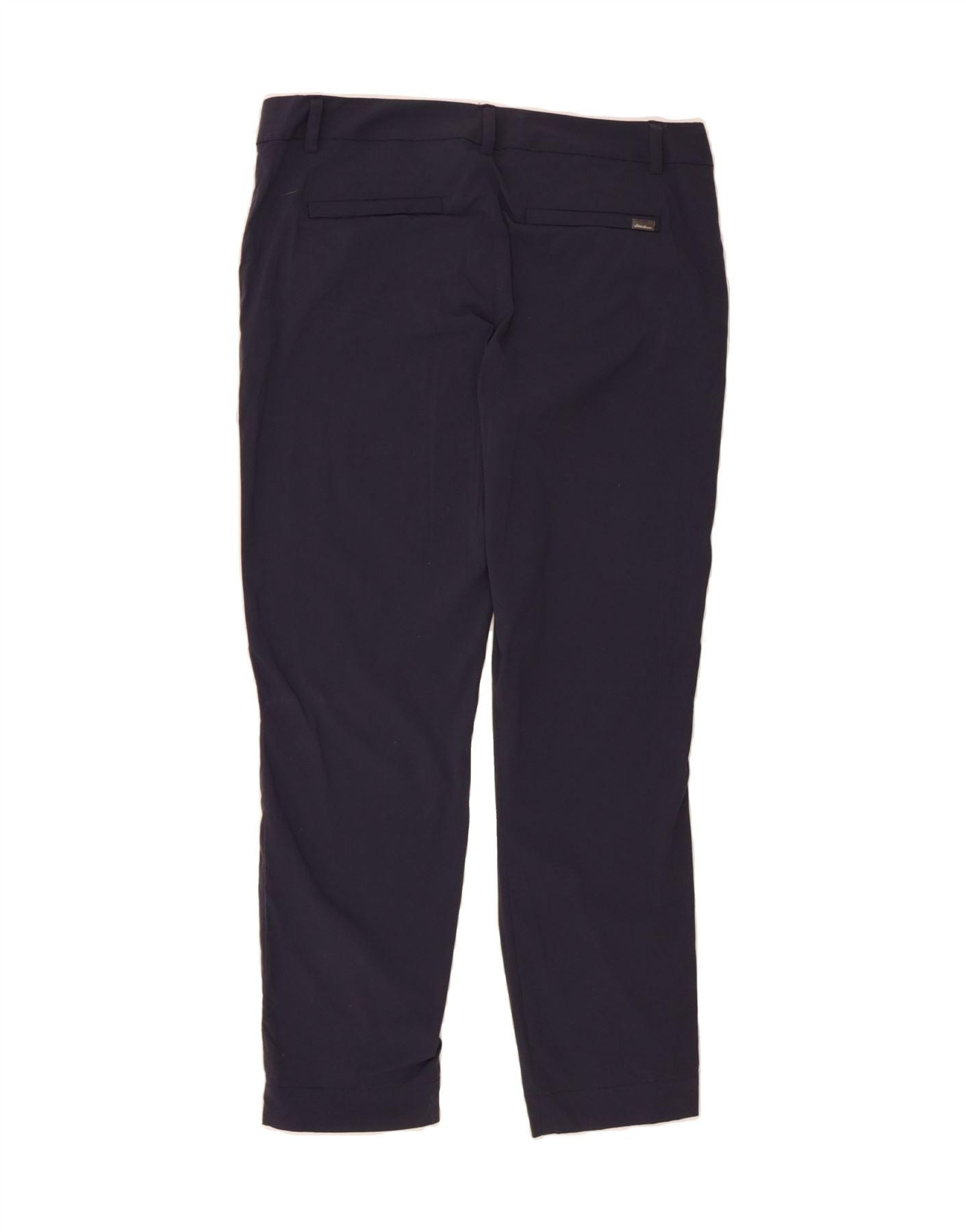 EDDIE BAUER Womens Slim Chino Trousers US 10 Large W32 L28 Navy Blue Nylon