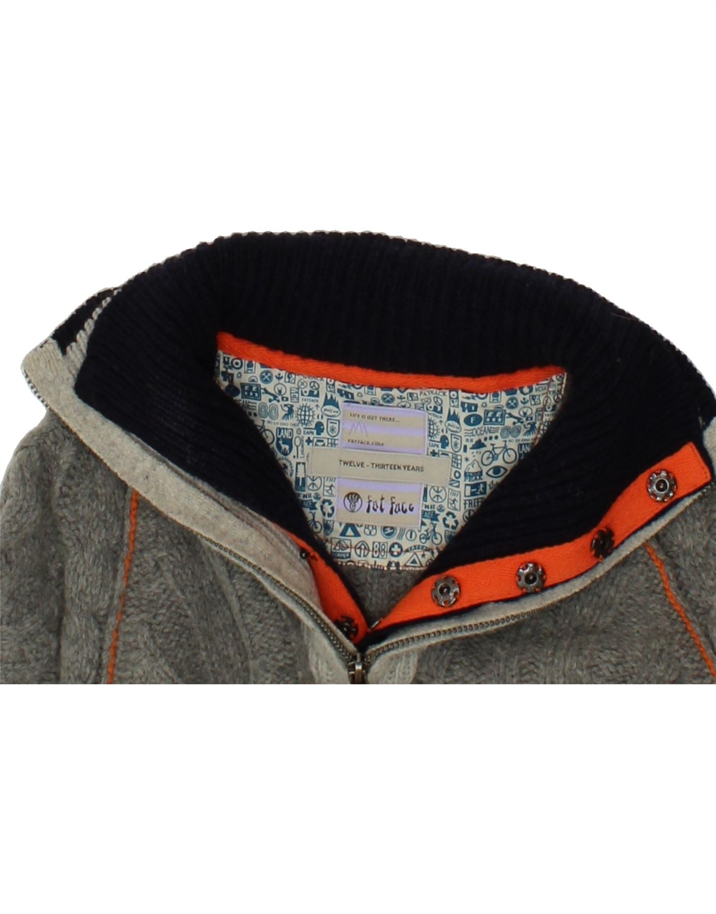 FAT FACE Boys Zip Neck Jumper Sweater 12-13 Years Grey Lambswool