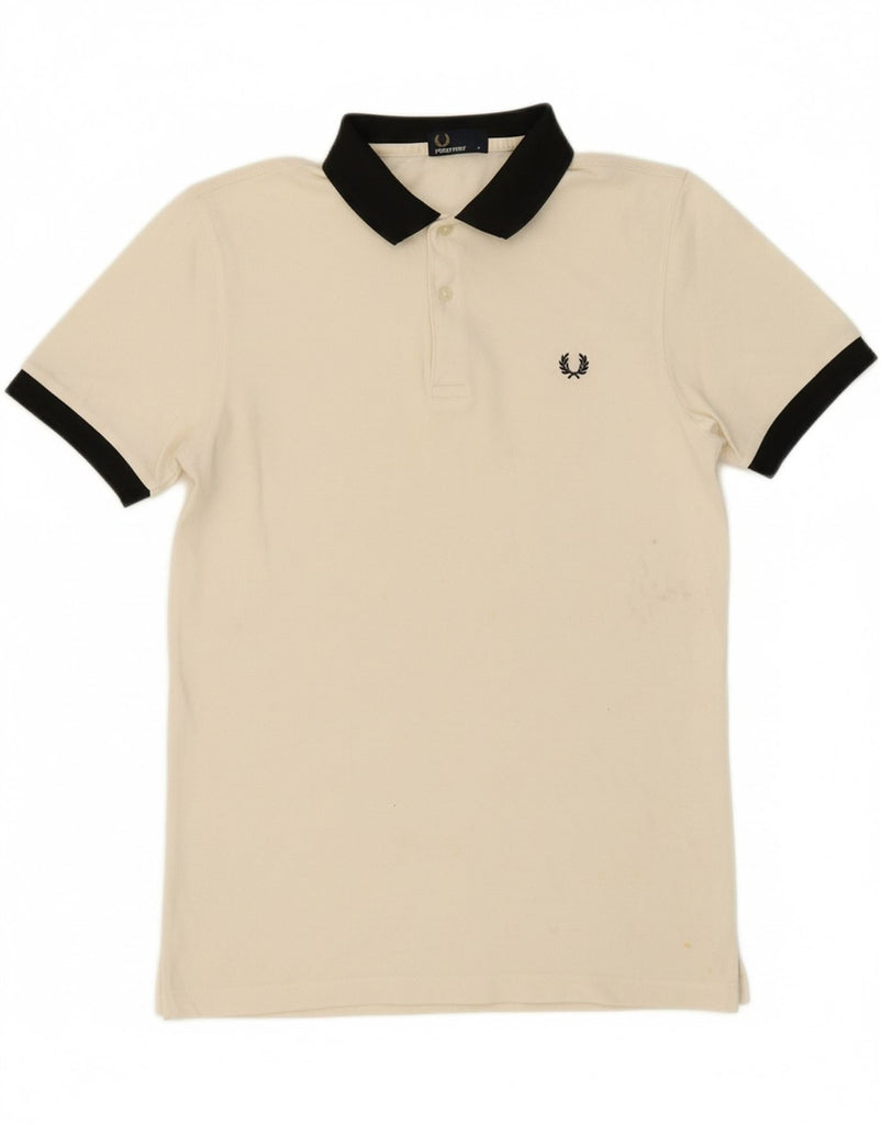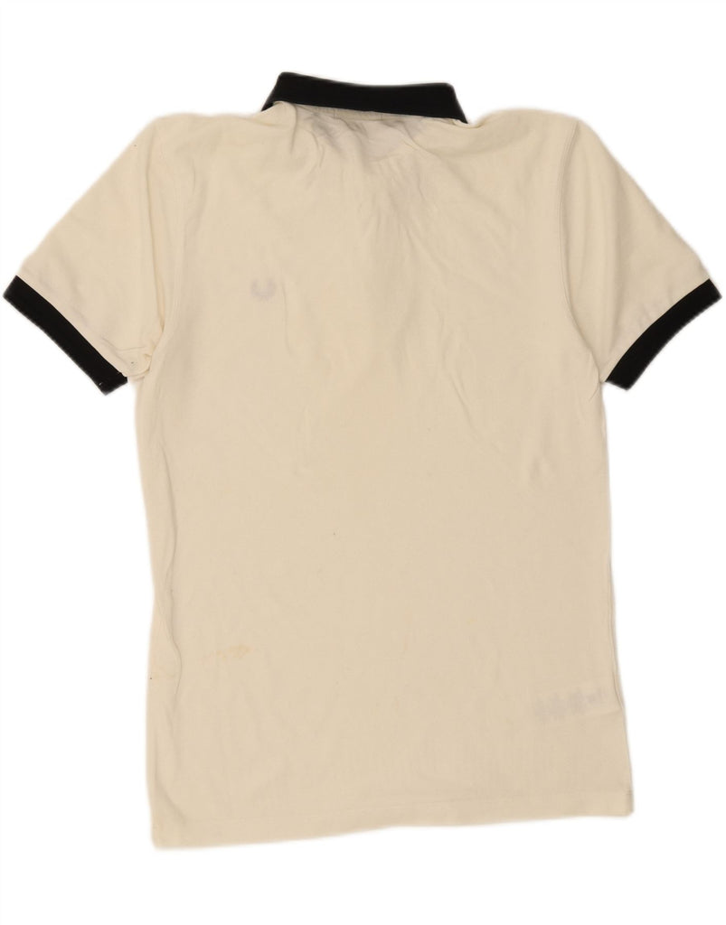 - AI Description: This Fred Perry boys' Polo Shirt is crafted from a soft off-white knit fabric, offering comfort and classic style. It features a traditional collared neckline and short sleeves, perfect for everyday wear. The button-up placket adds a neat finish. Designed for a regular fit, it ensures ease of movement. A subtle embroidered logo on the chest provides a signature touch, completing this timeless piece.