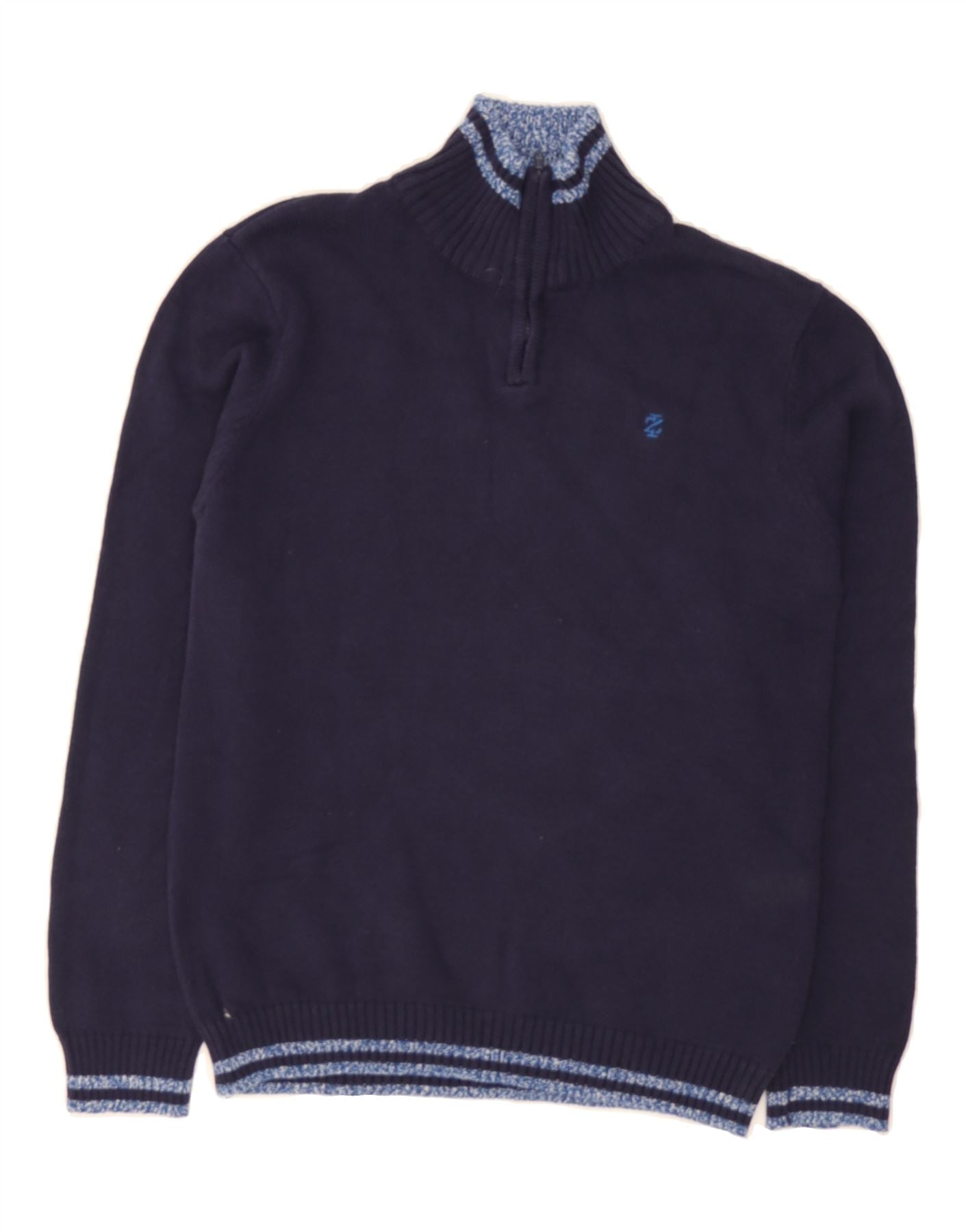 IZOD Boys Zip Neck Jumper Sweater 14-15 Years XL Navy Blue Cotton