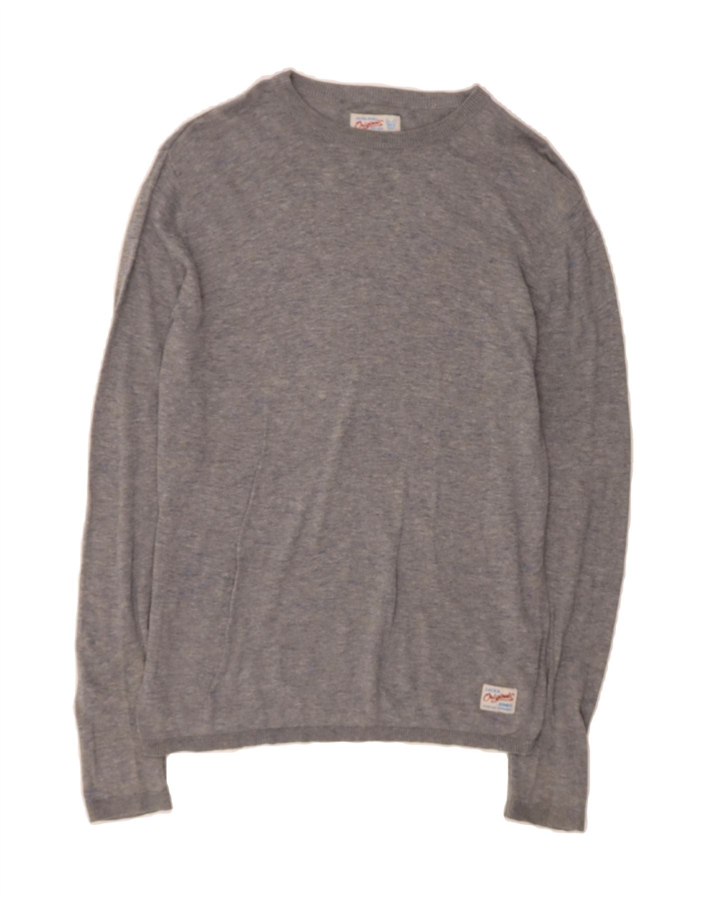 JACK & JONES Mens Crew Neck Jumper Sweater Medium Grey Cotton