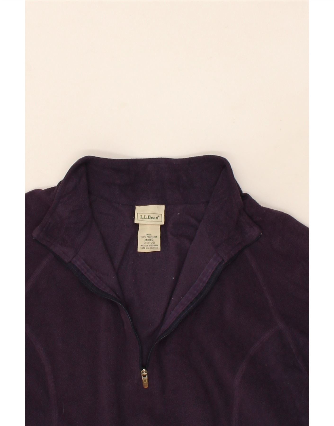 L.L.BEAN Womens Zip Neck Fleece Jumper UK 14 Medium Purple Polyester