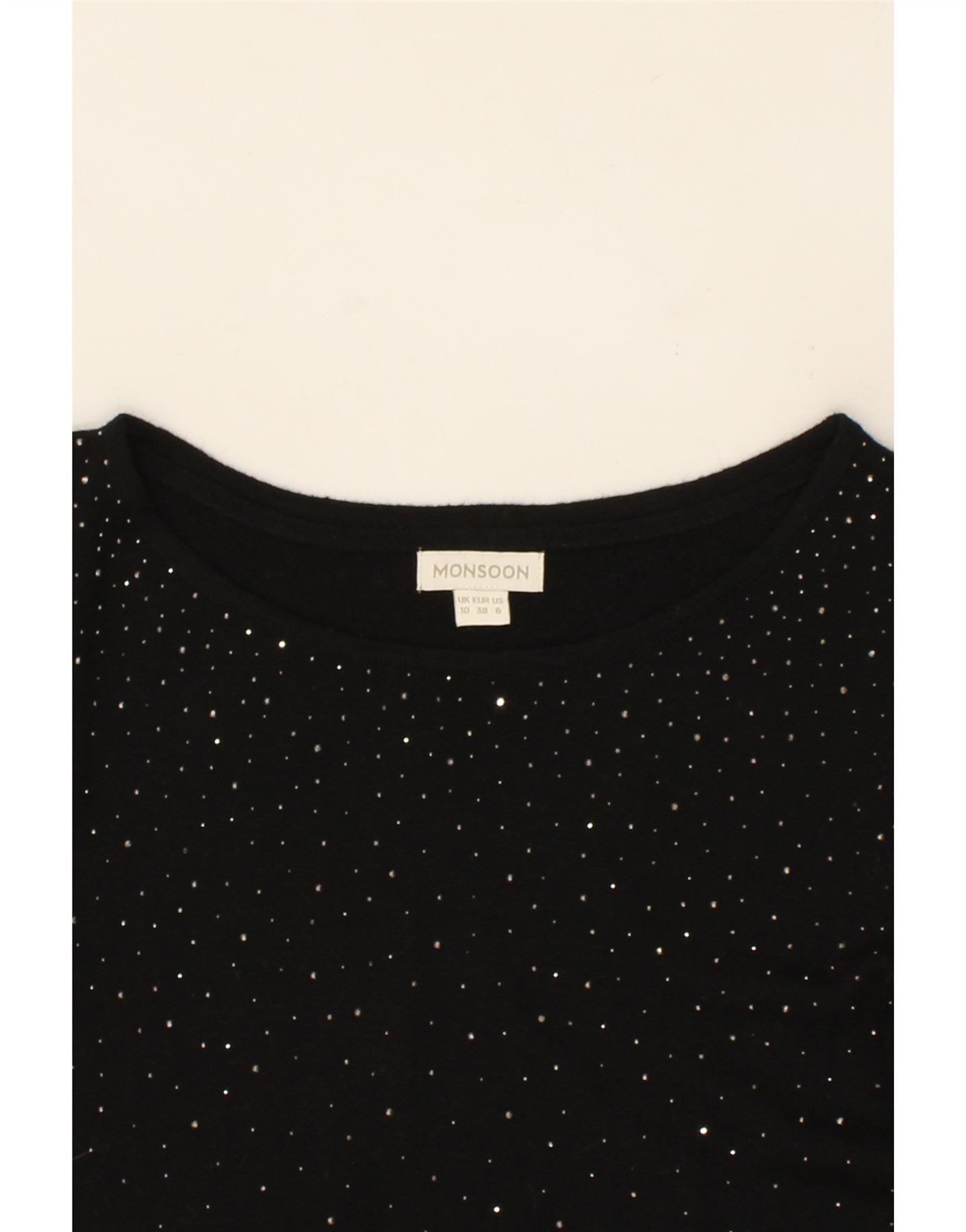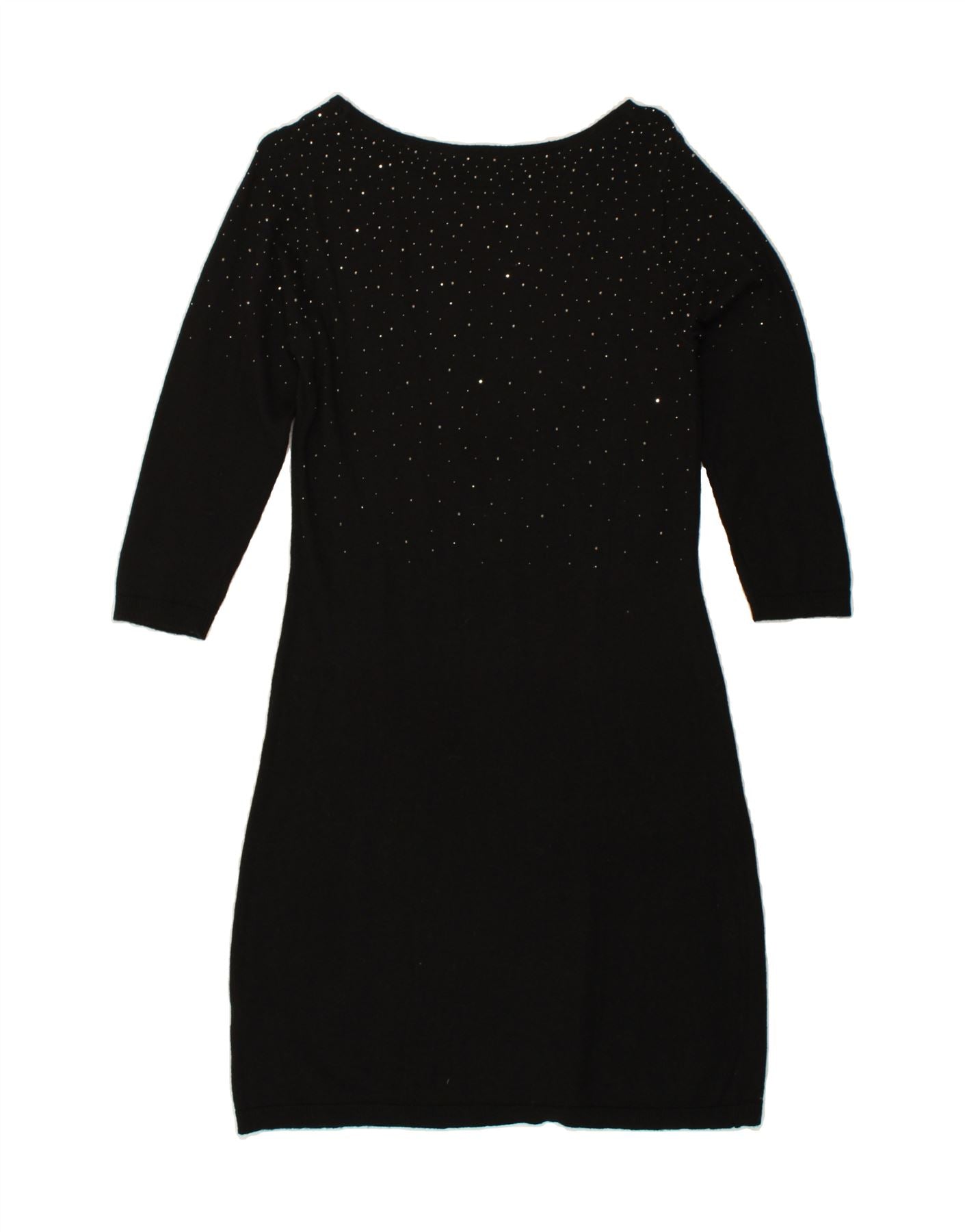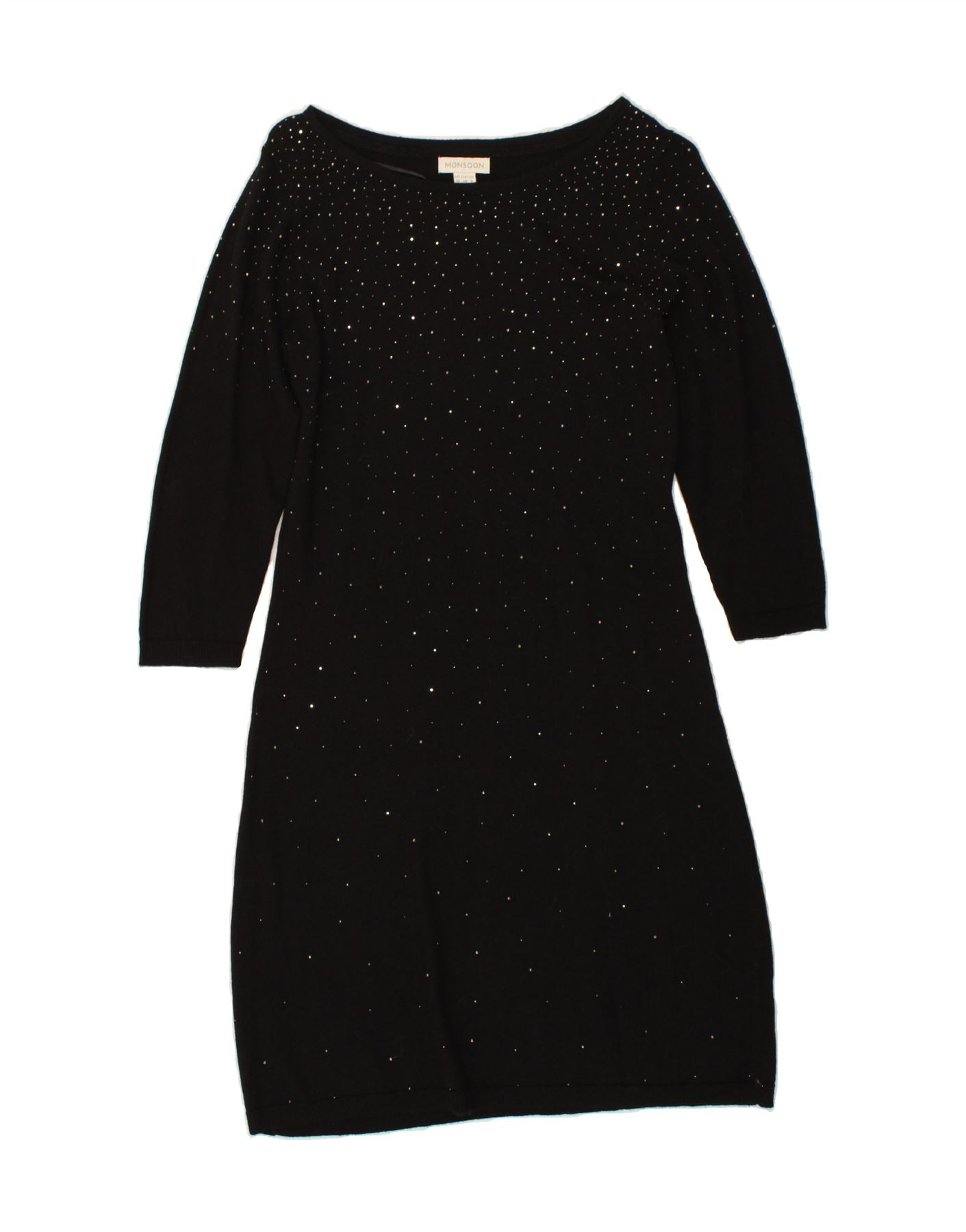 MONSOON Womens 3/4 Sleeve Jumper Dress UK 10 Small Black Spotted Viscose