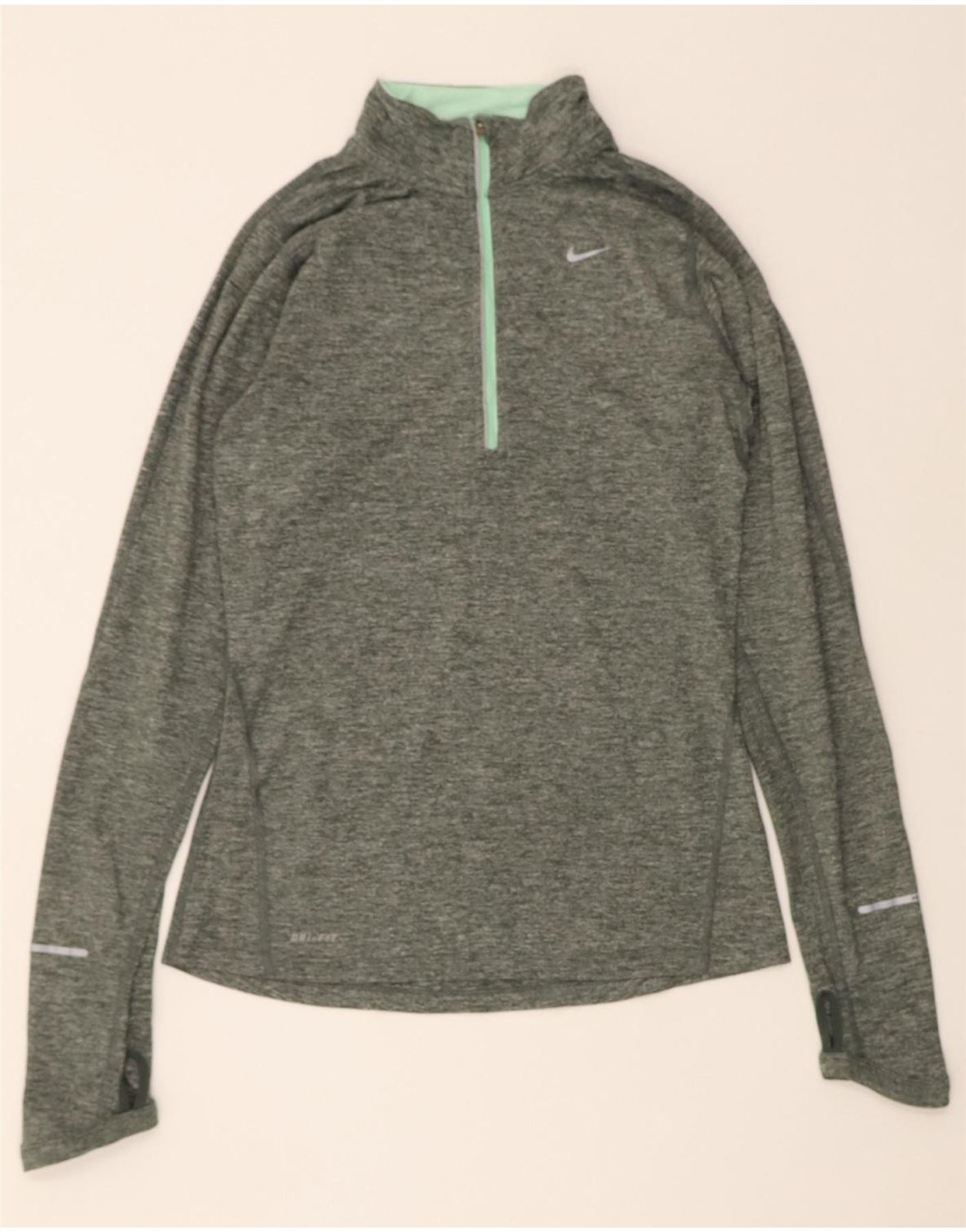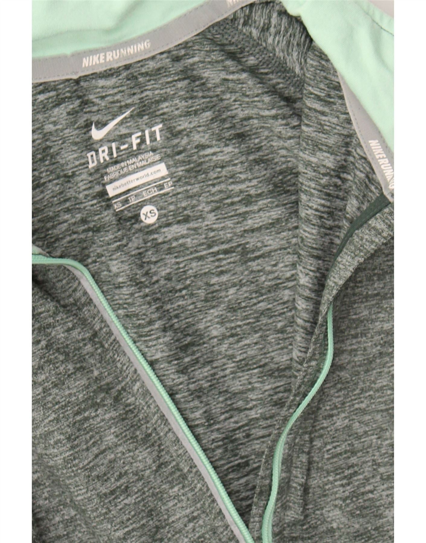 NIKE Womens Dri Fit Zip Neck Pullover Tracksuit Top UK 6 XS Green Flecked