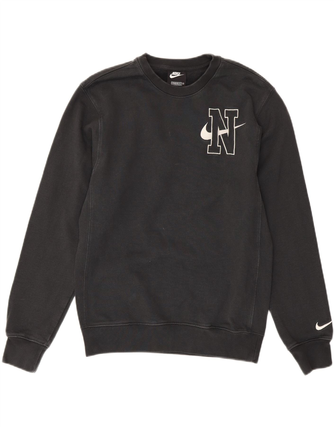 - AI Description: This pre-owned Nike men's sweatshirt jumper is in excellent condition. Crafted from 100% cotton fleece, it features a classic round neck and long sleeves. The black regular fit jumper has a pullover closure and a graphic logo accent. Label size XS. Despite minor visible wear on the front, back and collar, this sports-style jumper offers superior comfort. Washing instructions: Use mild detergent, wash with similar colours, wash and iron inside out. Do not bleach.
