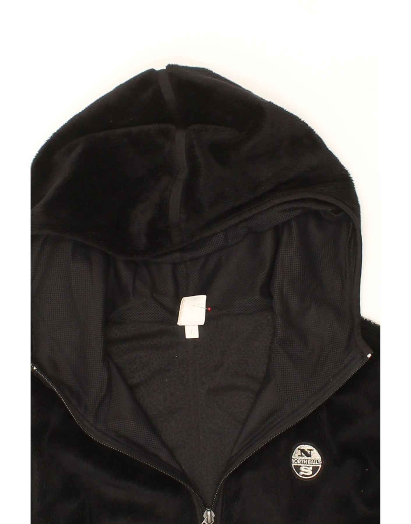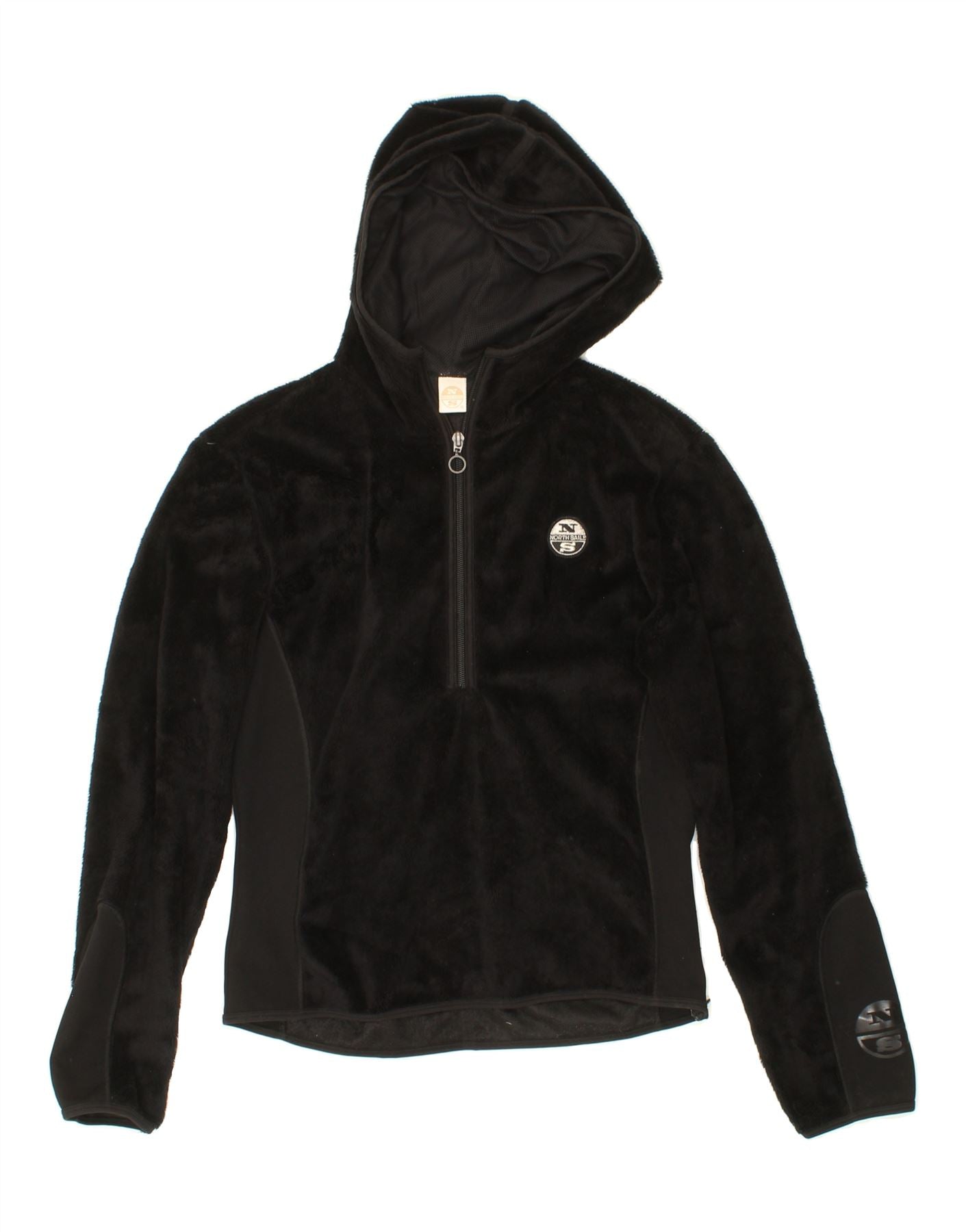 NORTH SAILS Womens Zip Neck Hooded Fleece Jumper UK 14 Large Black