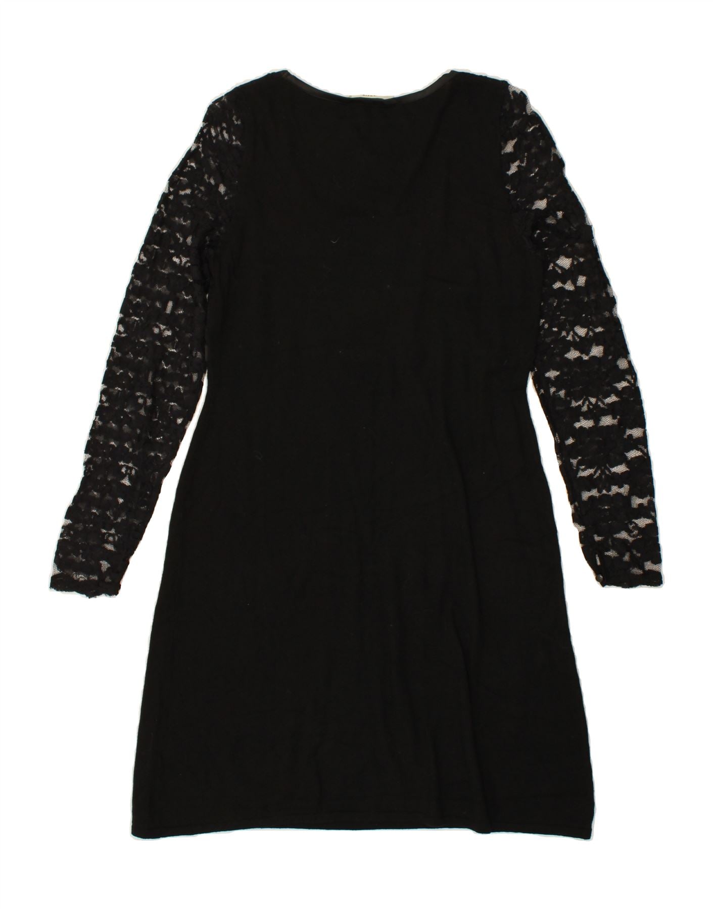 OASIS Womens Long Sleeve Basic Dress UK 12 Medium Black Floral Cotton