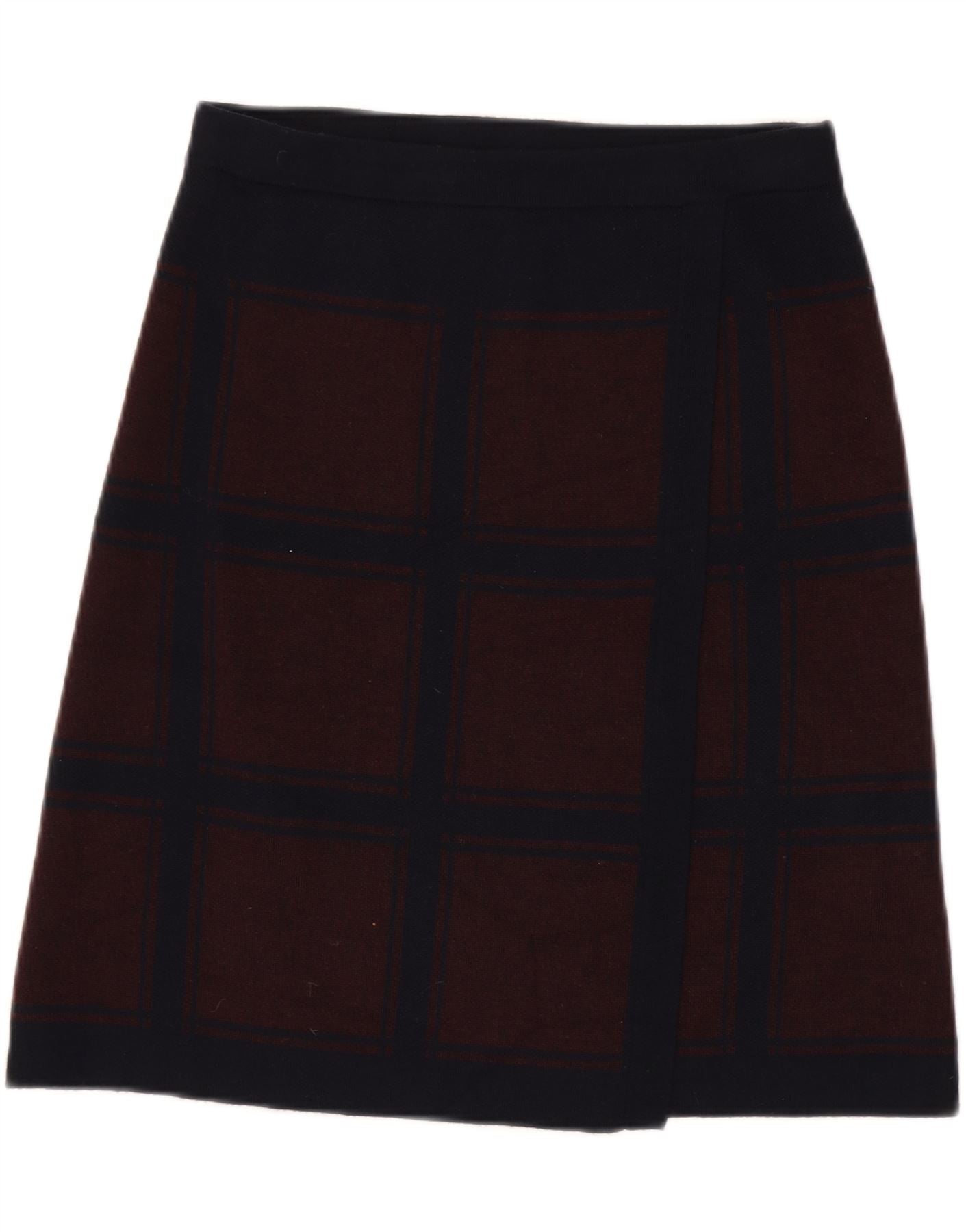 PHASE EIGHT Womens Wrap Skirt UK 10 Small W28 Navy Blue Plaid Wool