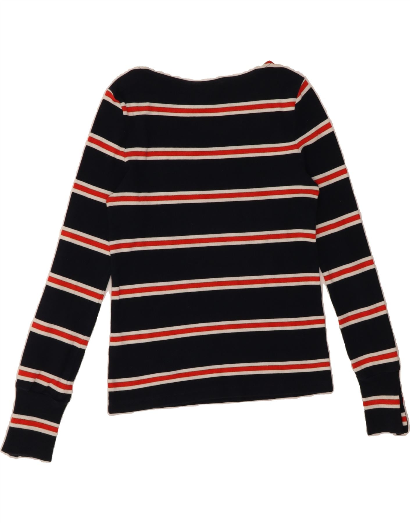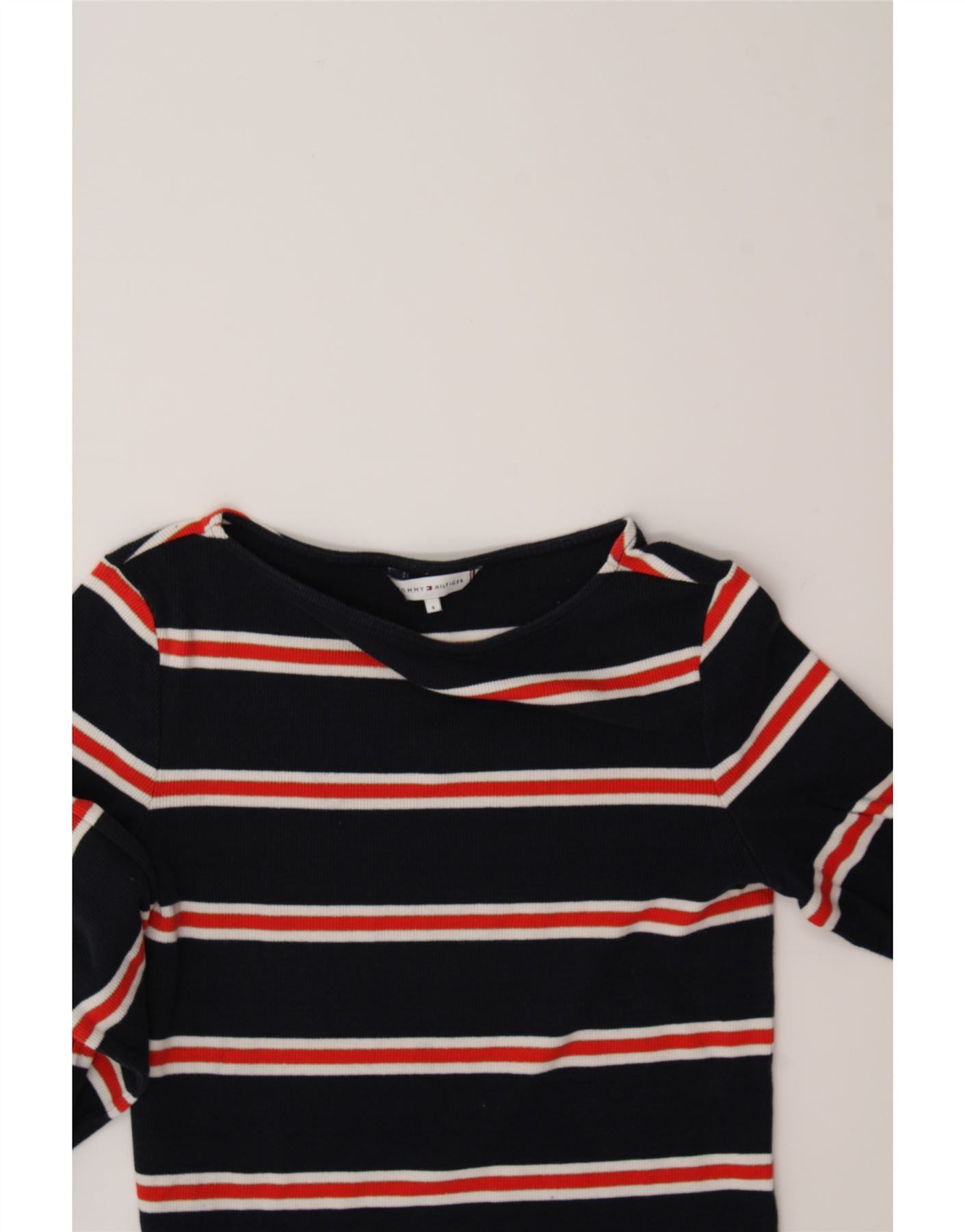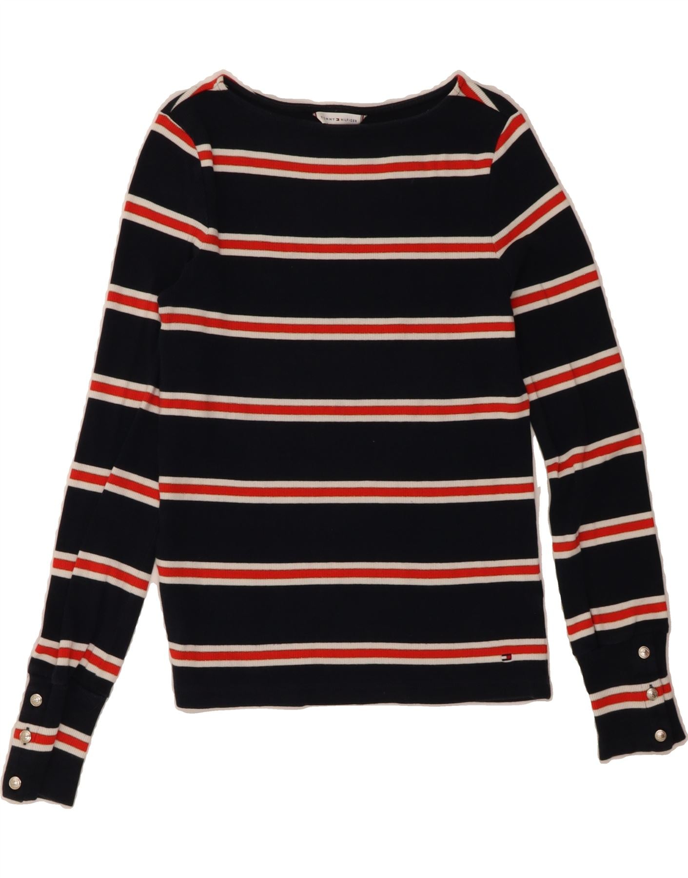 TOMMY HILFIGER Womens Top Long Sleeve UK 10 Small Navy Blue Striped Cotton