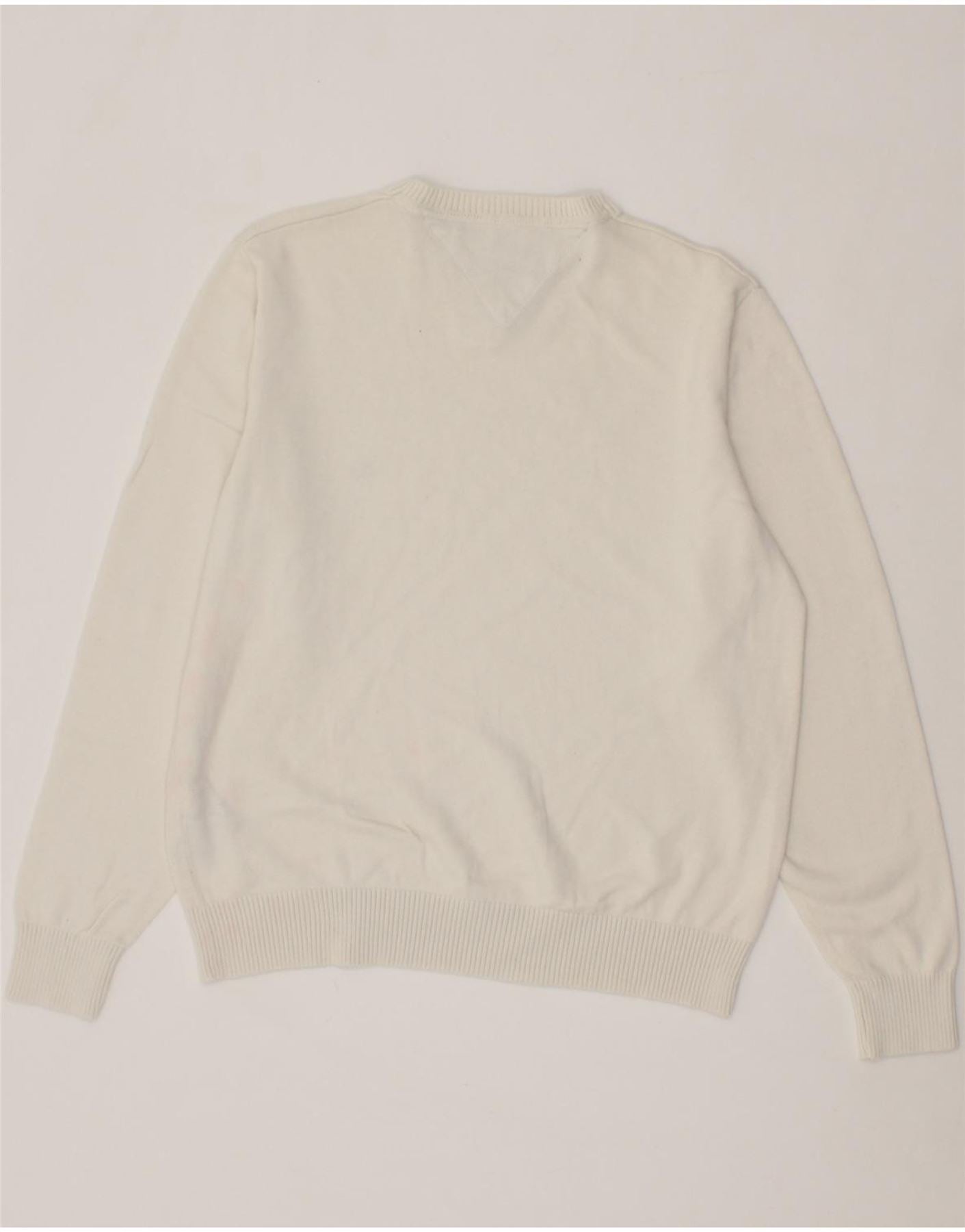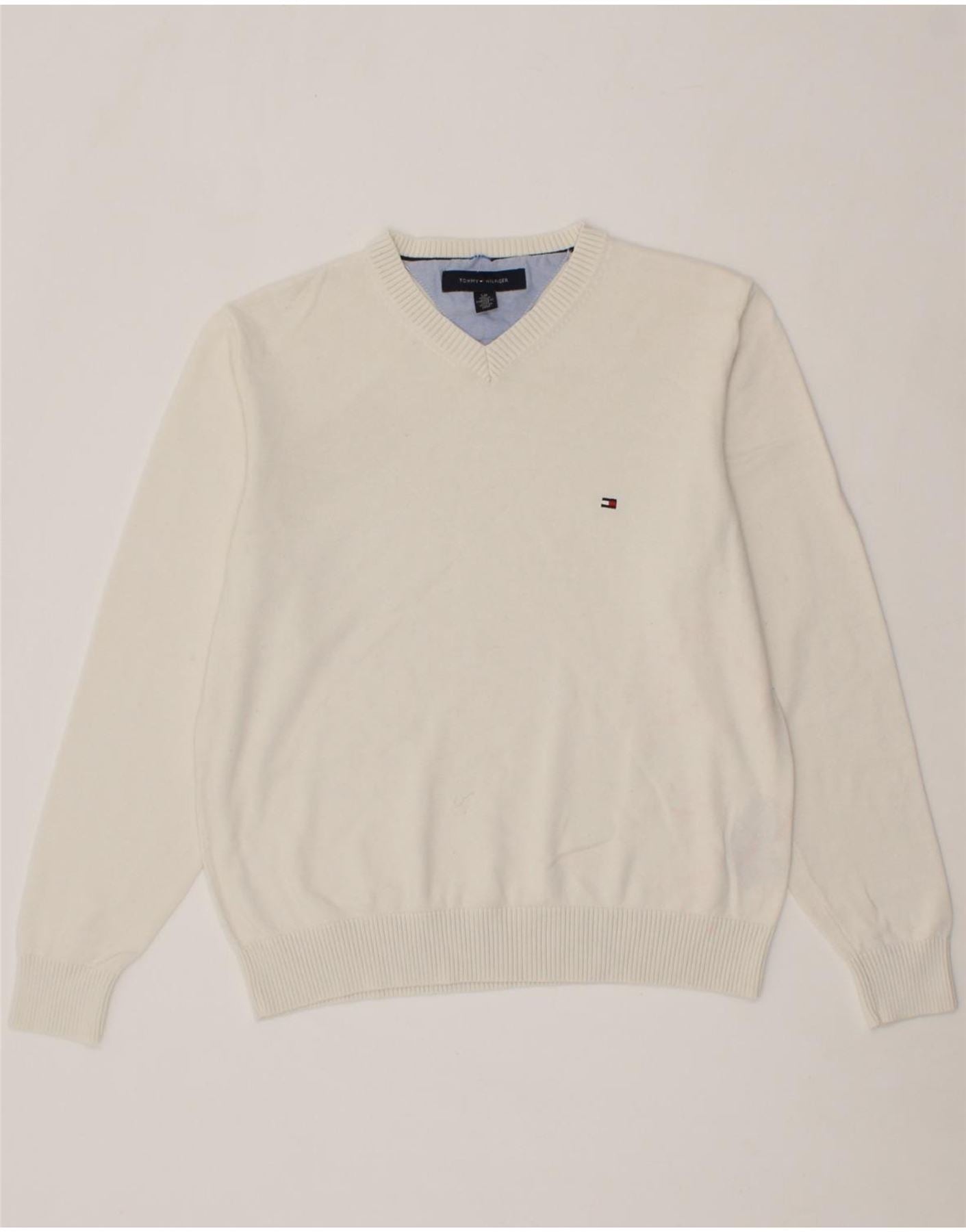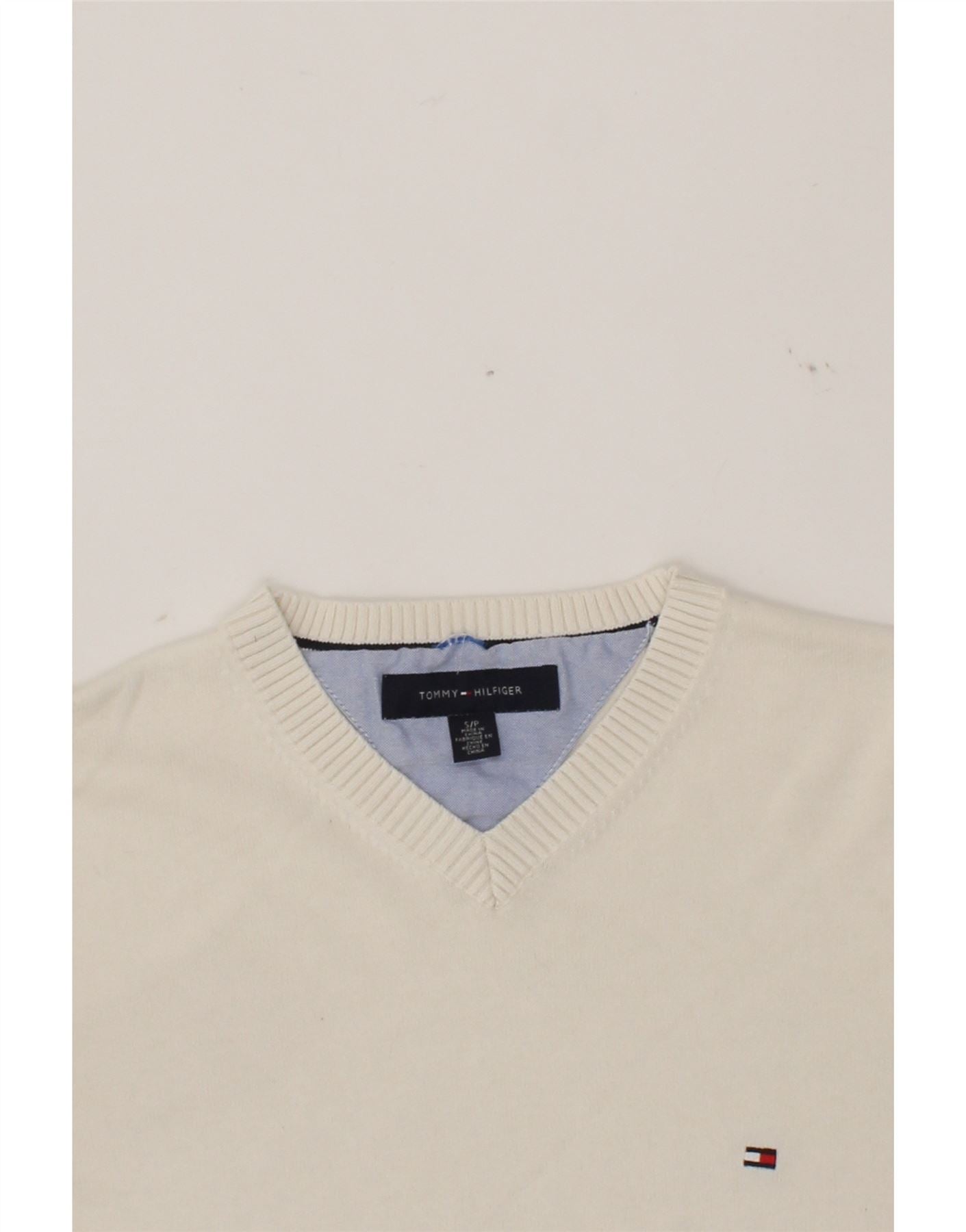 TOMMY HILFIGER Womens V-Neck Jumper Sweater UK 10 Small White Cotton