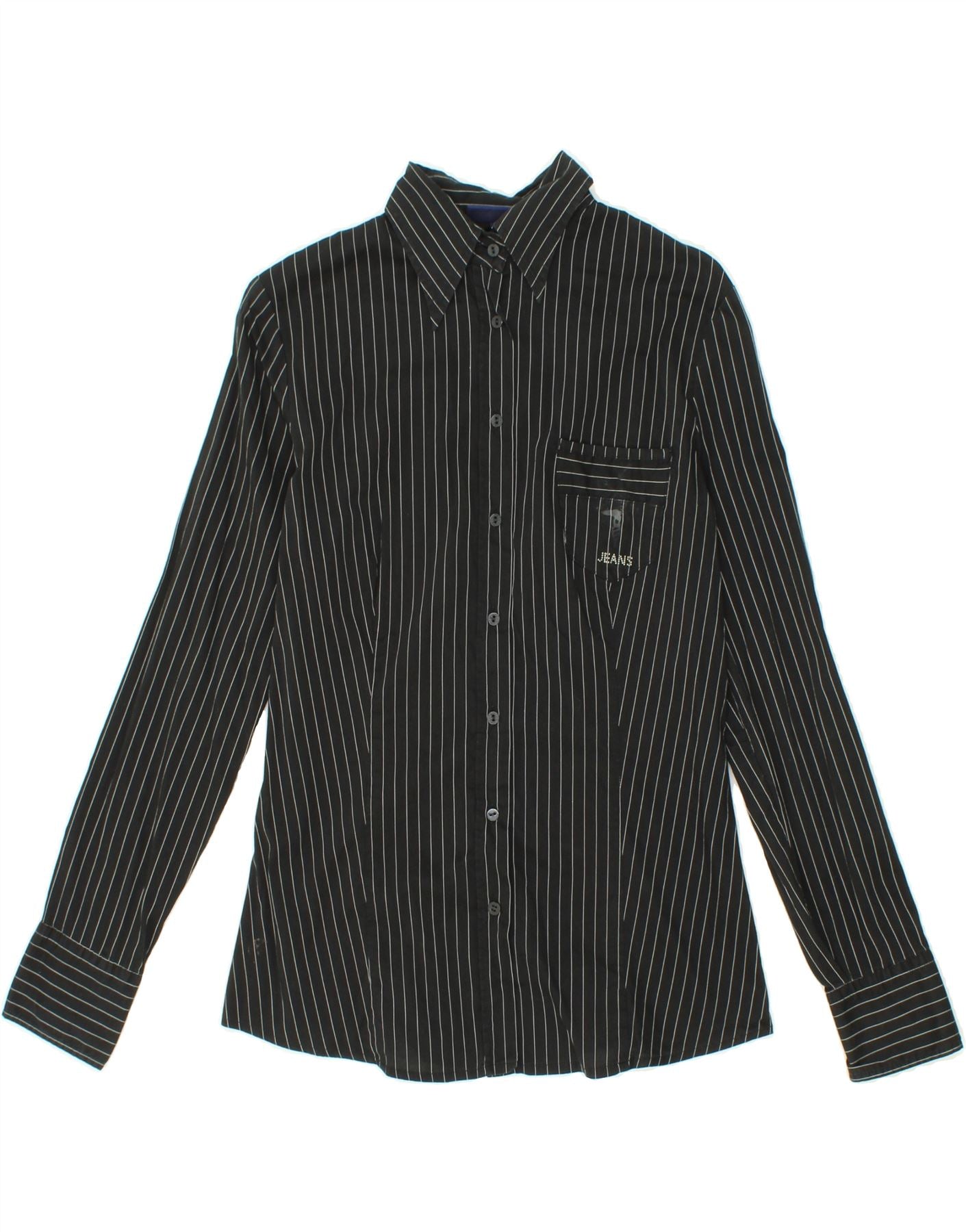 TRUSSARDI JEANS Mens Shirt Medium Black Pinstripe Cotton