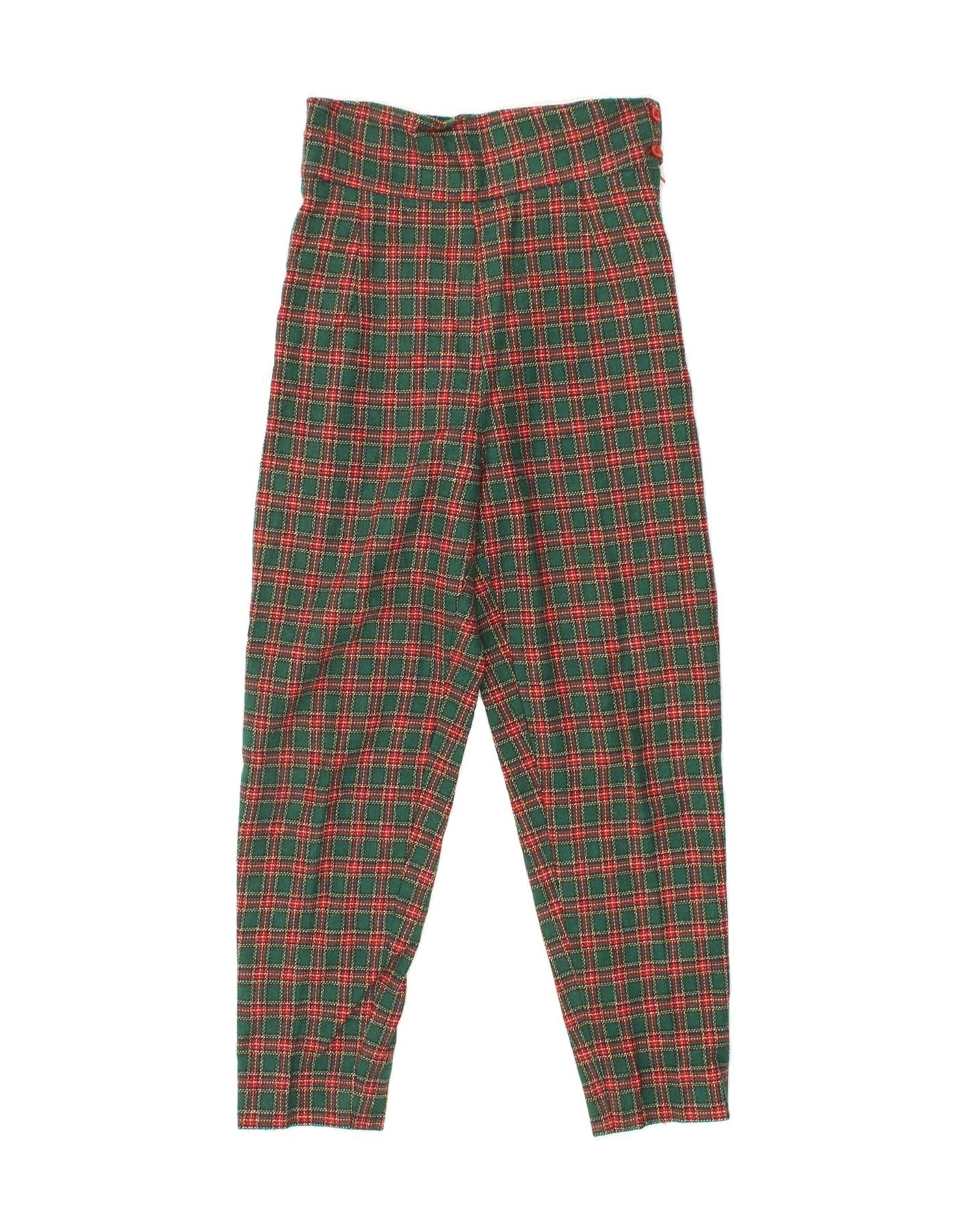 VINTAGE Womens High Waist Casual Trousers W28 L27 Green Check