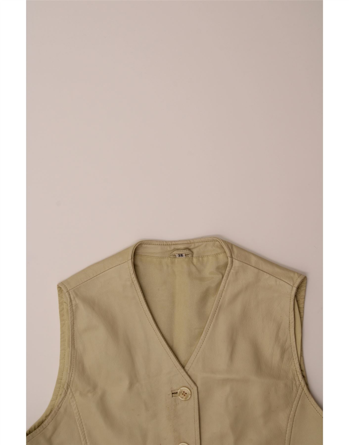 VINTAGE Womens Leather Waistcoat EU 38 Medium Beige Leather