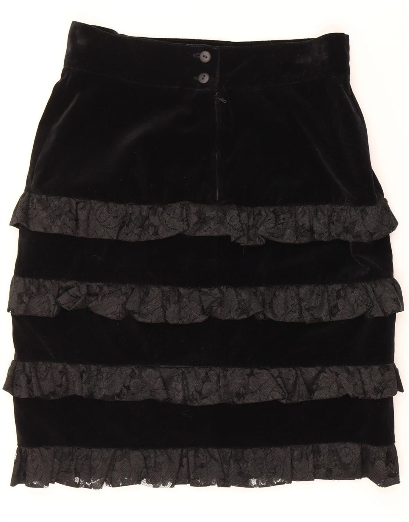 VINTAGE Womens Velvet Tiered Skirt IT 46 Large W30 Black Cotton