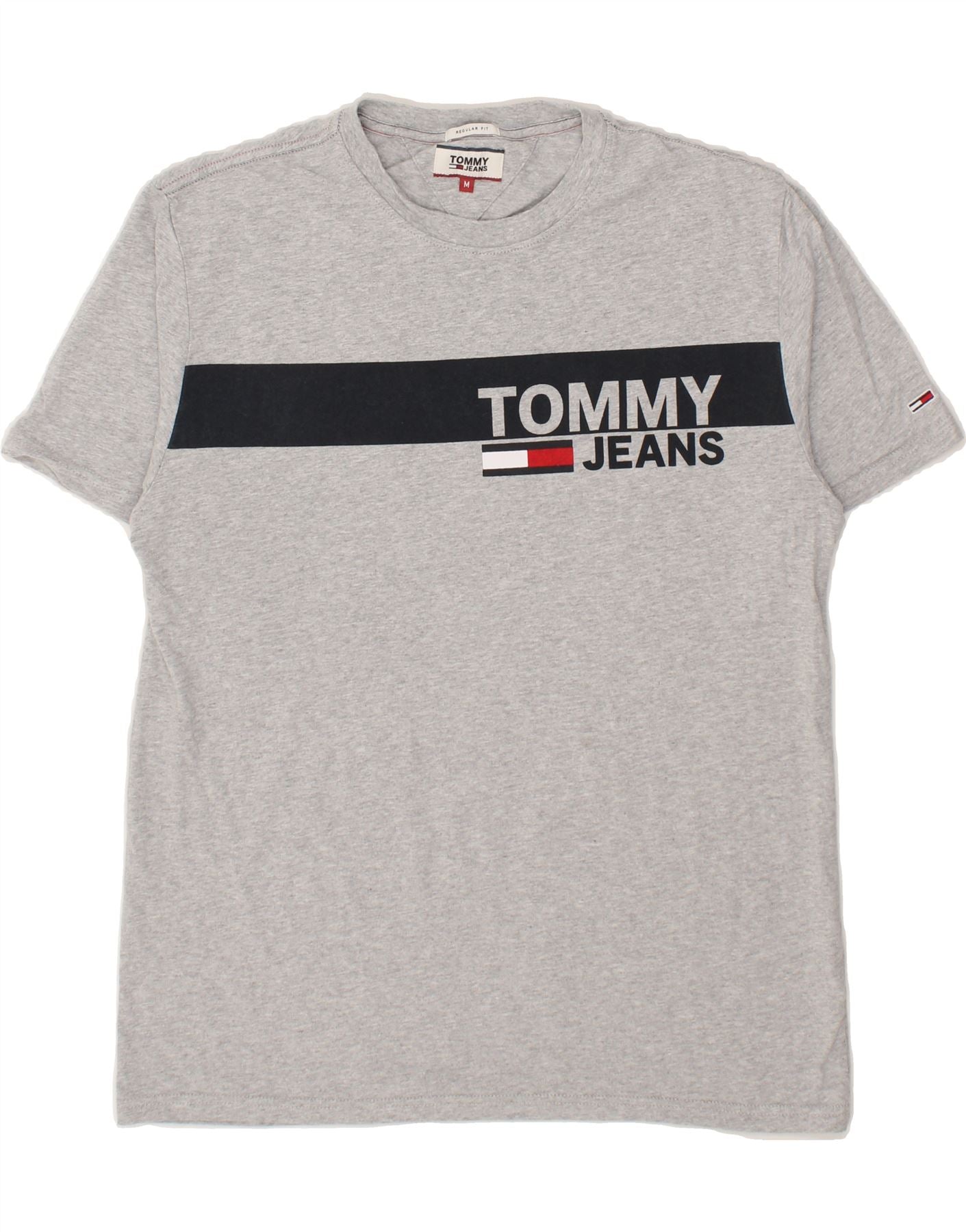 TOMMY HILFIGER Mens Regular Fit Graphic T-Shirt Top Medium Grey Cotton