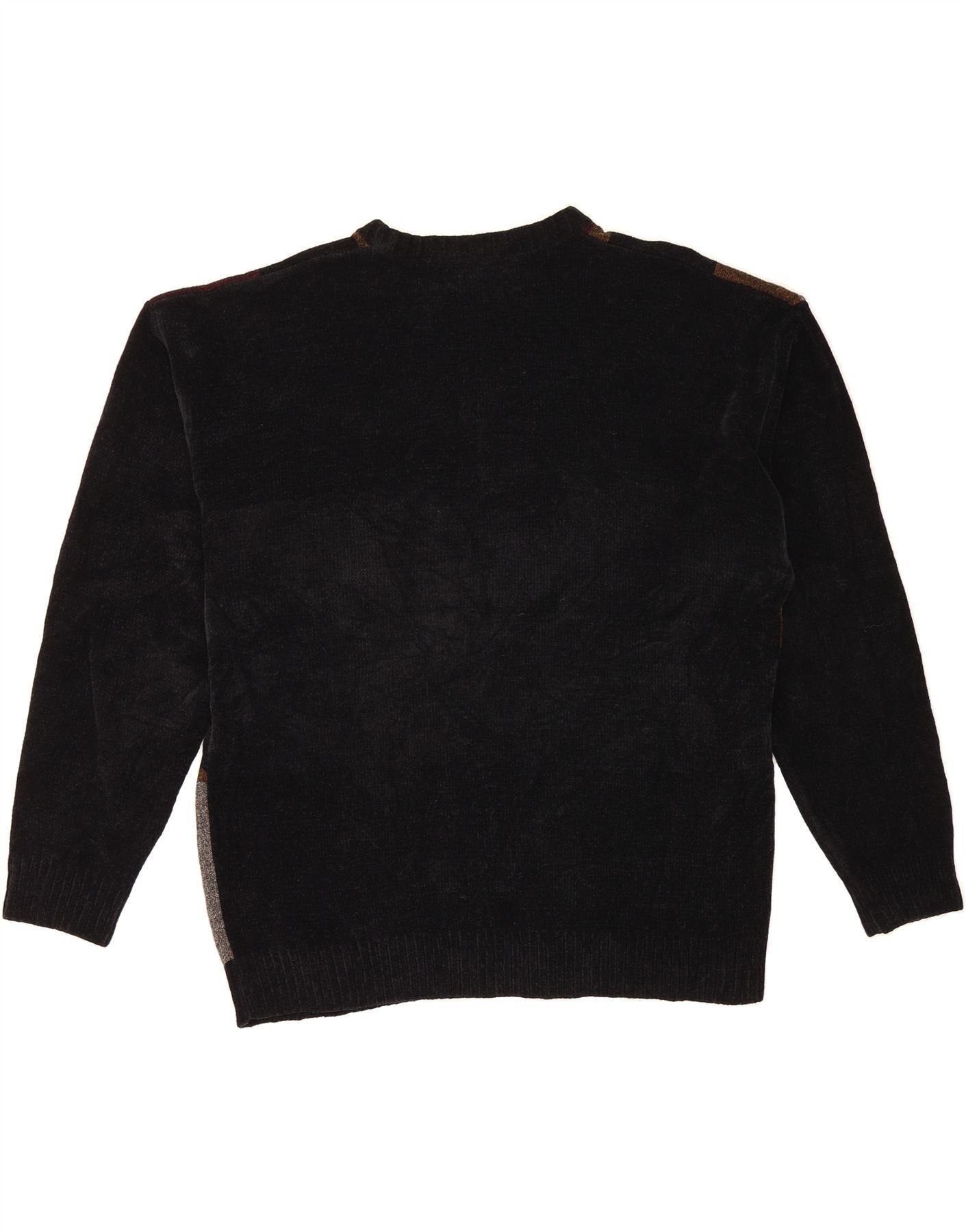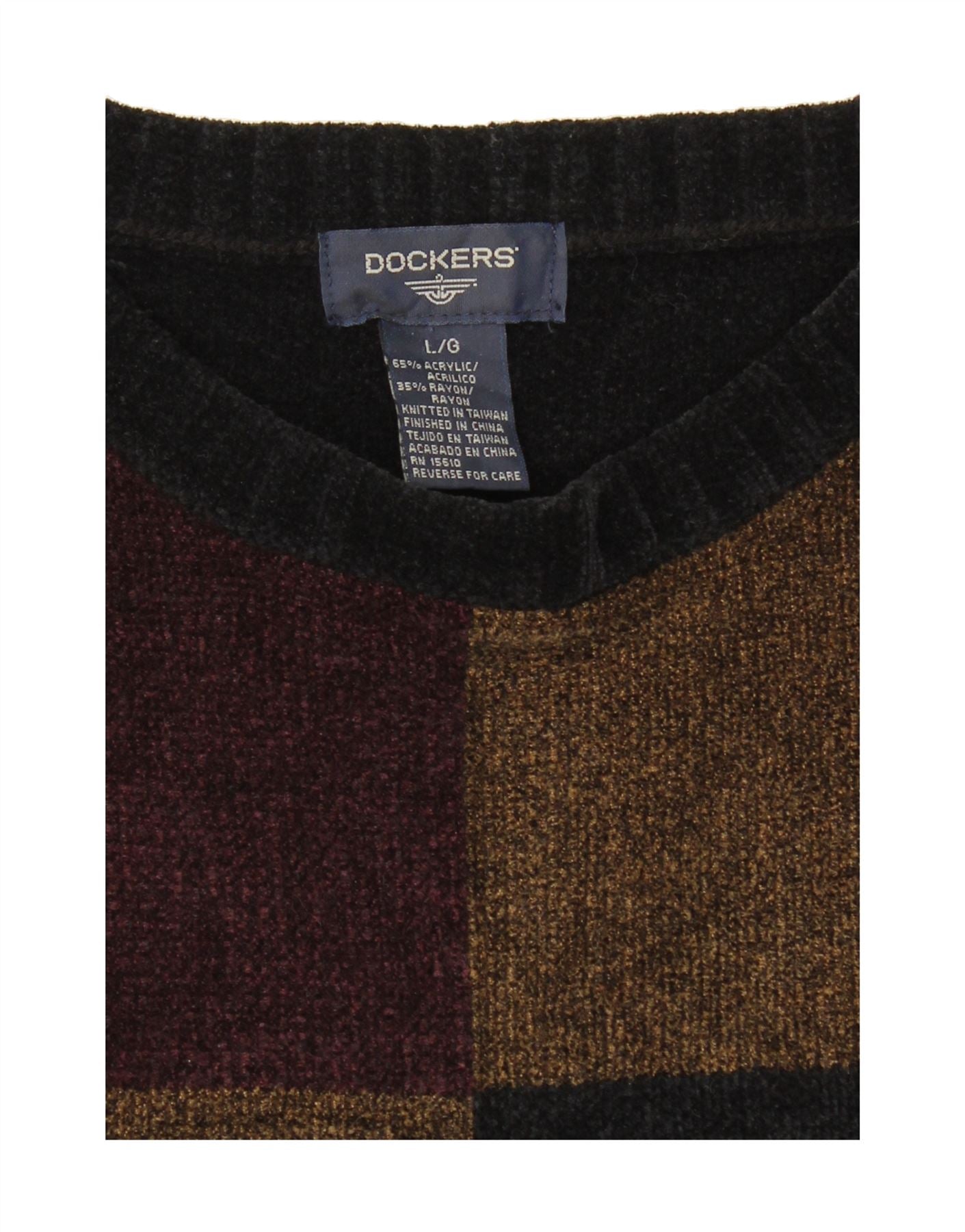 DOCKERS Mens Crew Neck Jumper Sweater Large Black Patchwork Acrylic