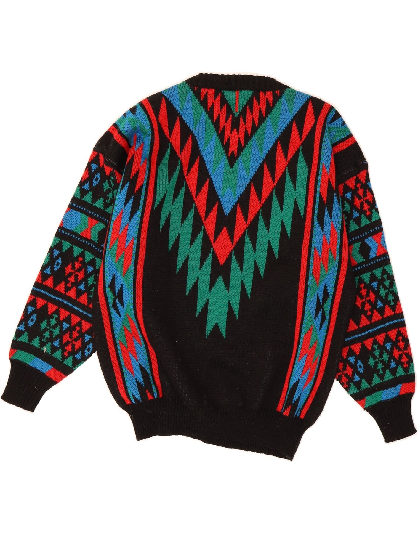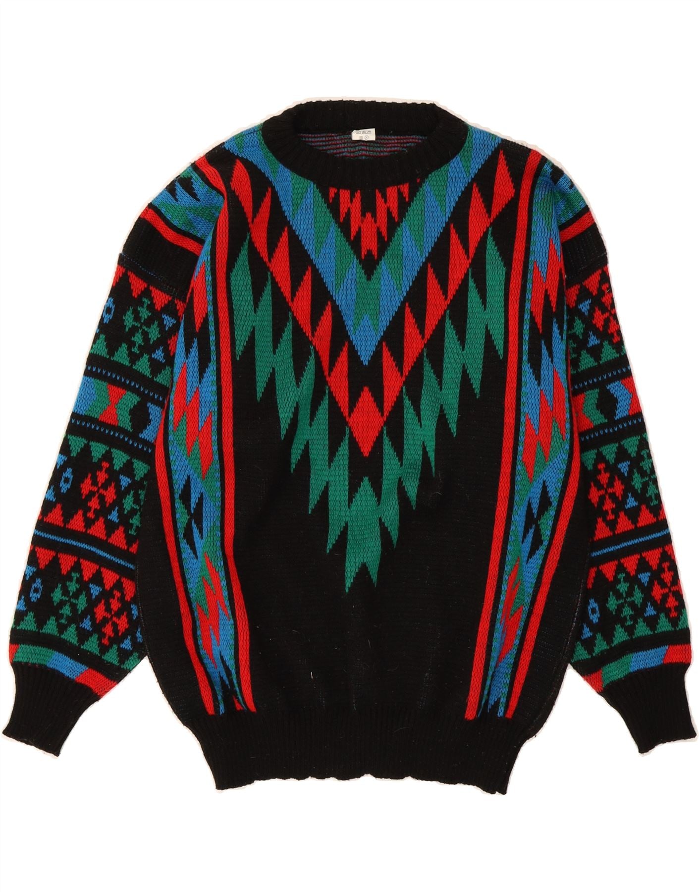 VINTAGE Mens Crew Neck Jumper Sweater Small Black Geometric Acrylic