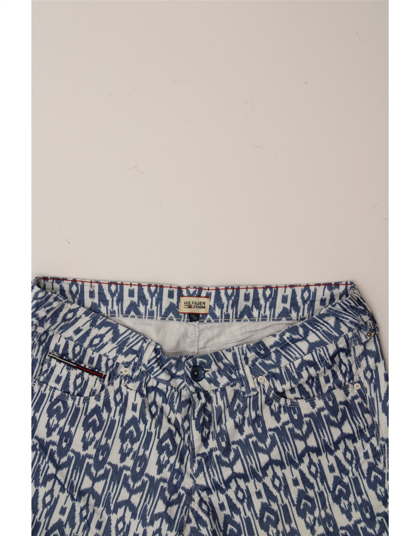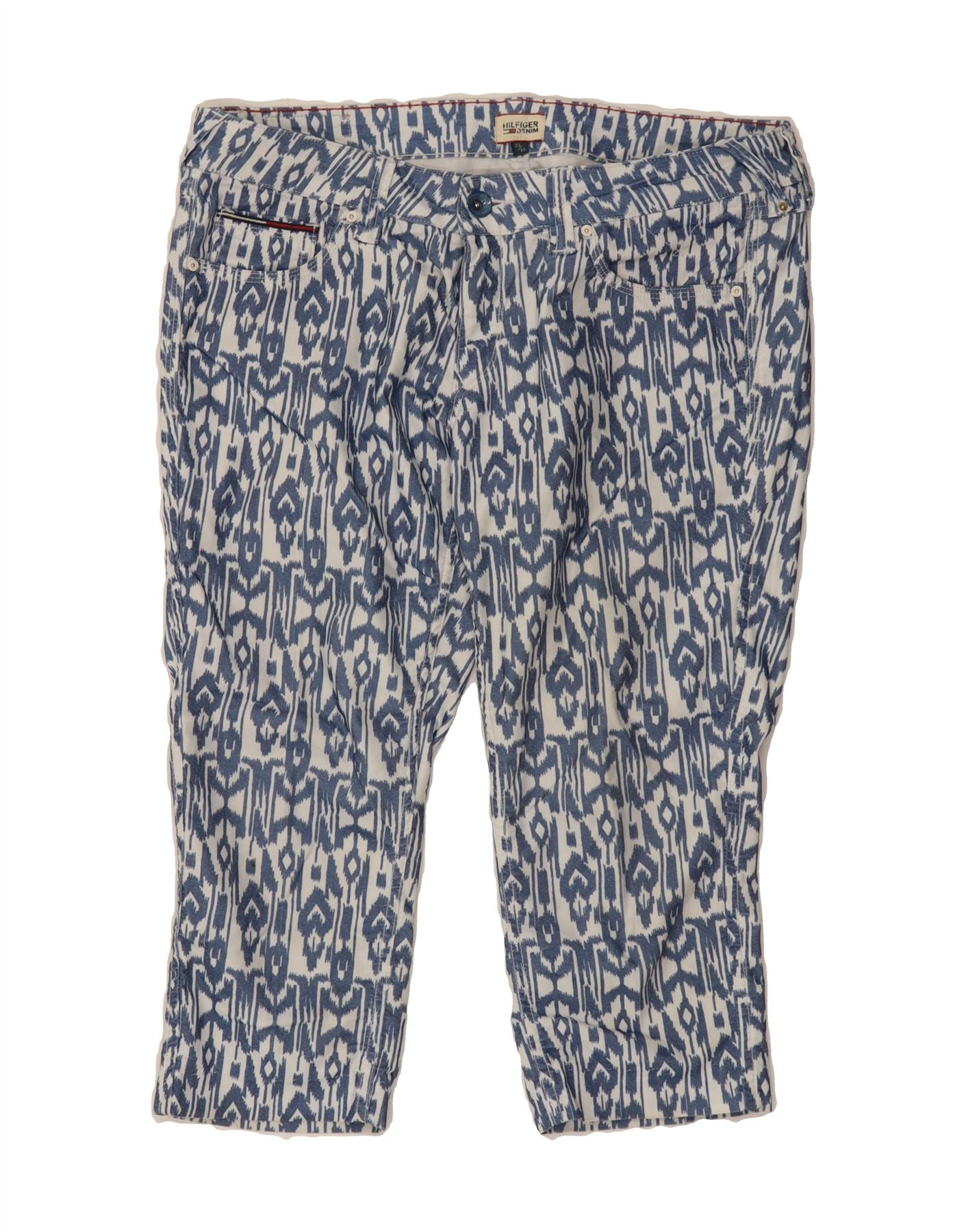 TOMMY HILFIGER Womens Slim Capri Jeans W32 L20 Blue Fair Isle Cotton