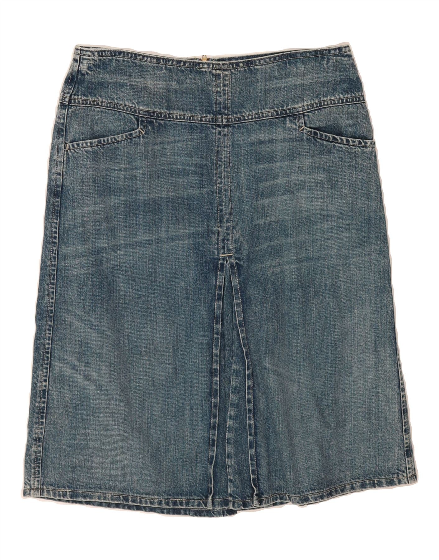 BENETTON Womens Denim Skirt IT 42 Medium W30 L24 Blue Cotton