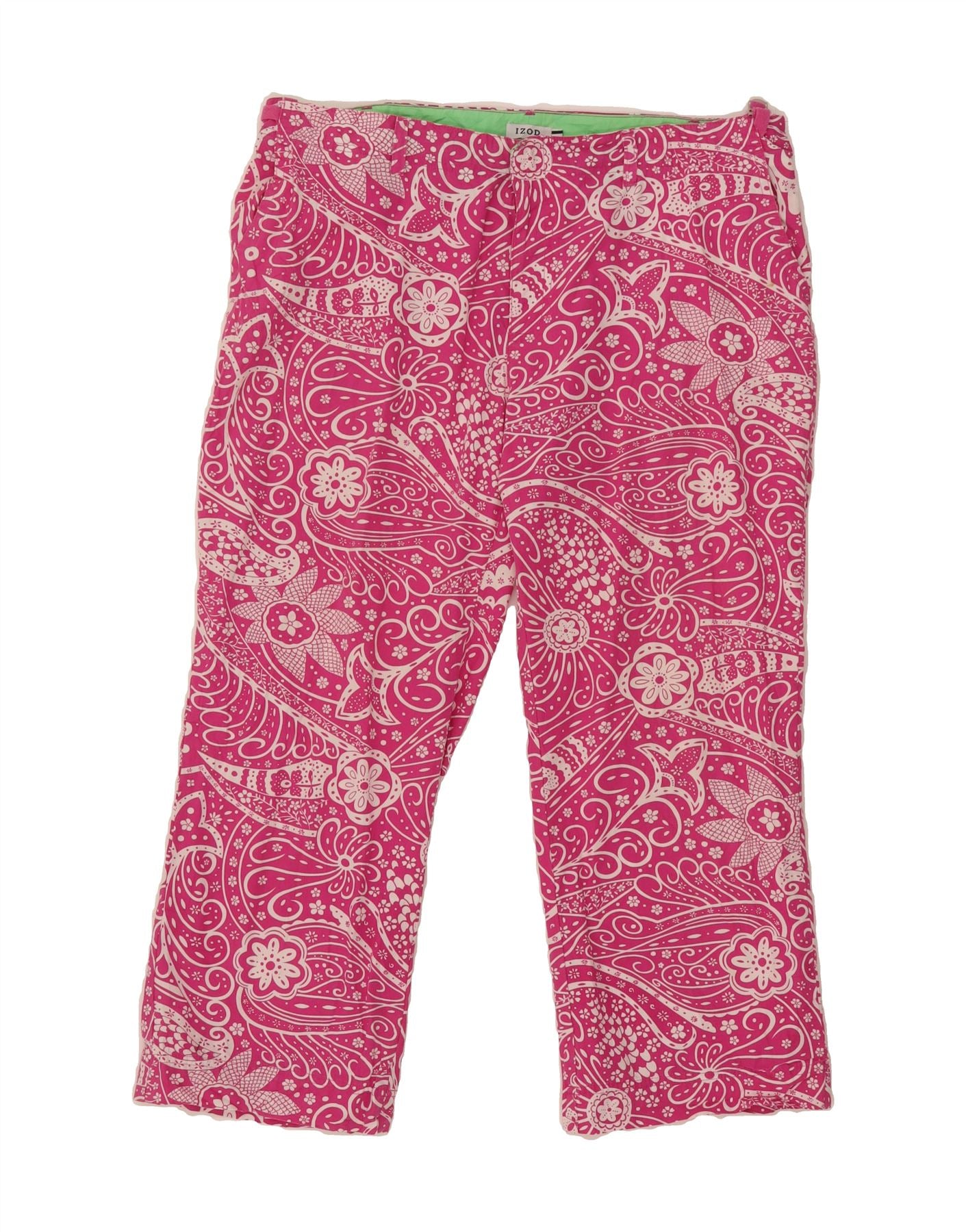 IZOD Womens Straight Cropped Trousers US 14 XL W34 L24 Pink Floral Cotton