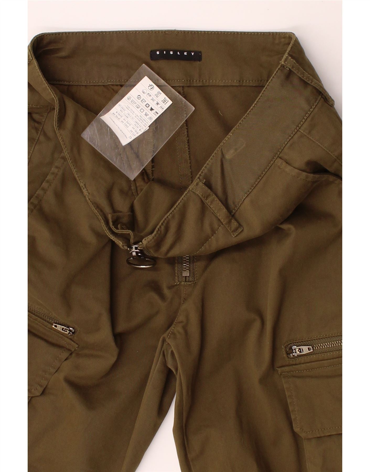 SISLEY Womens Straight Cargo Trousers UK 10 Small W30 L24 Green Cotton