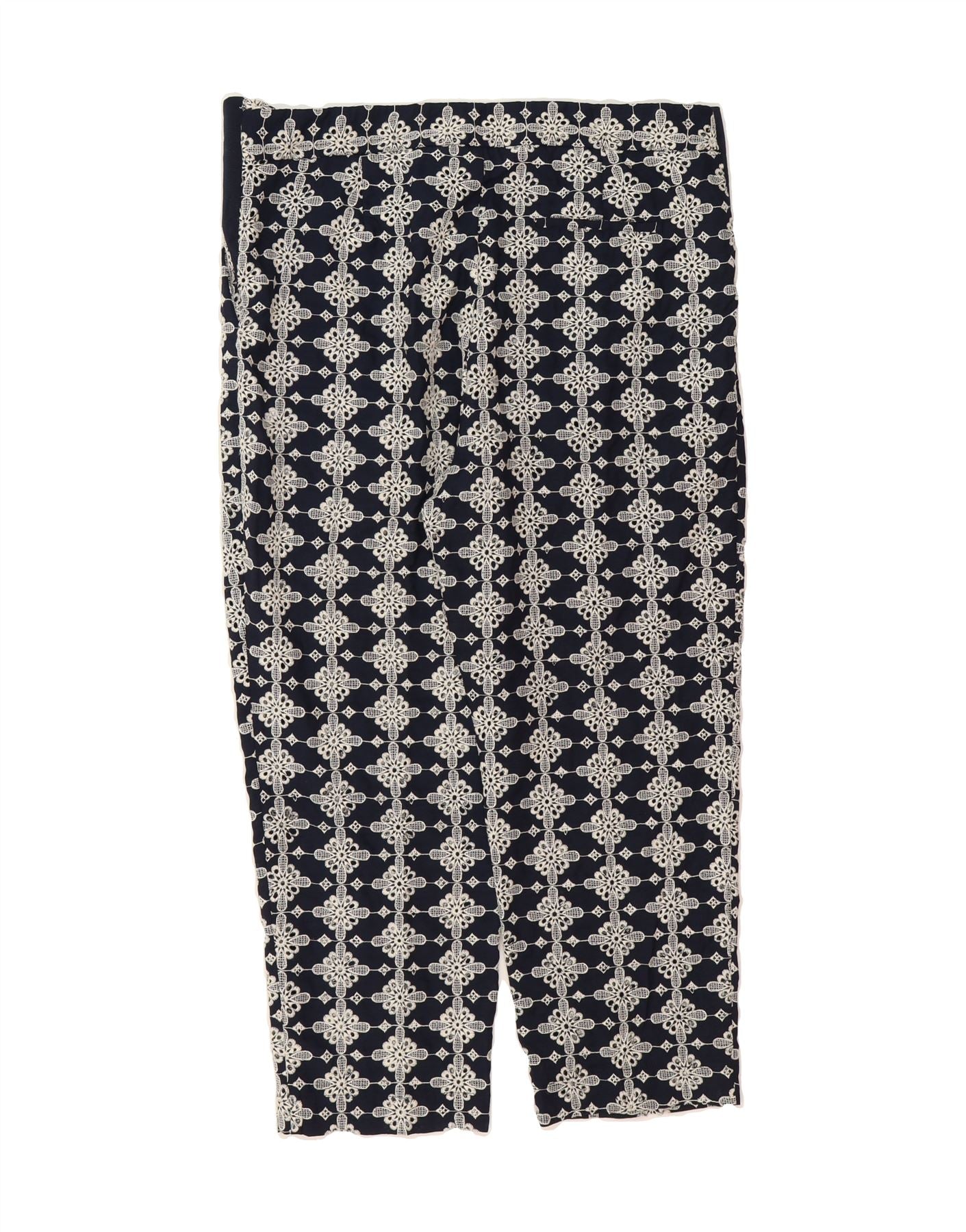 ZARA Womens Capri Trousers UK 18 XL W38 L24 Navy Blue Floral Polyester