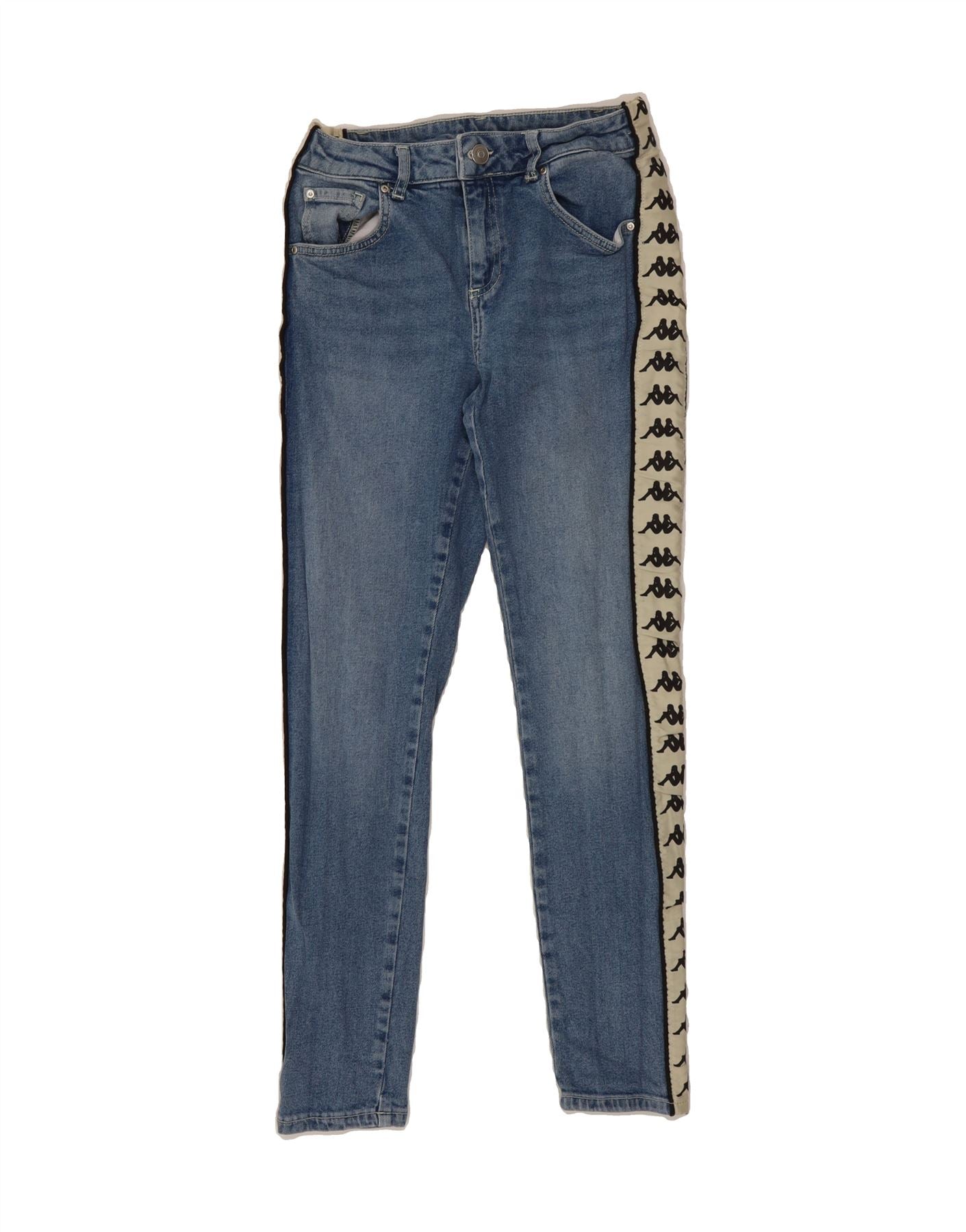 KAPPA Womens Crop Graphic Skinny Jeans Small W24 L26 Blue Colourblock