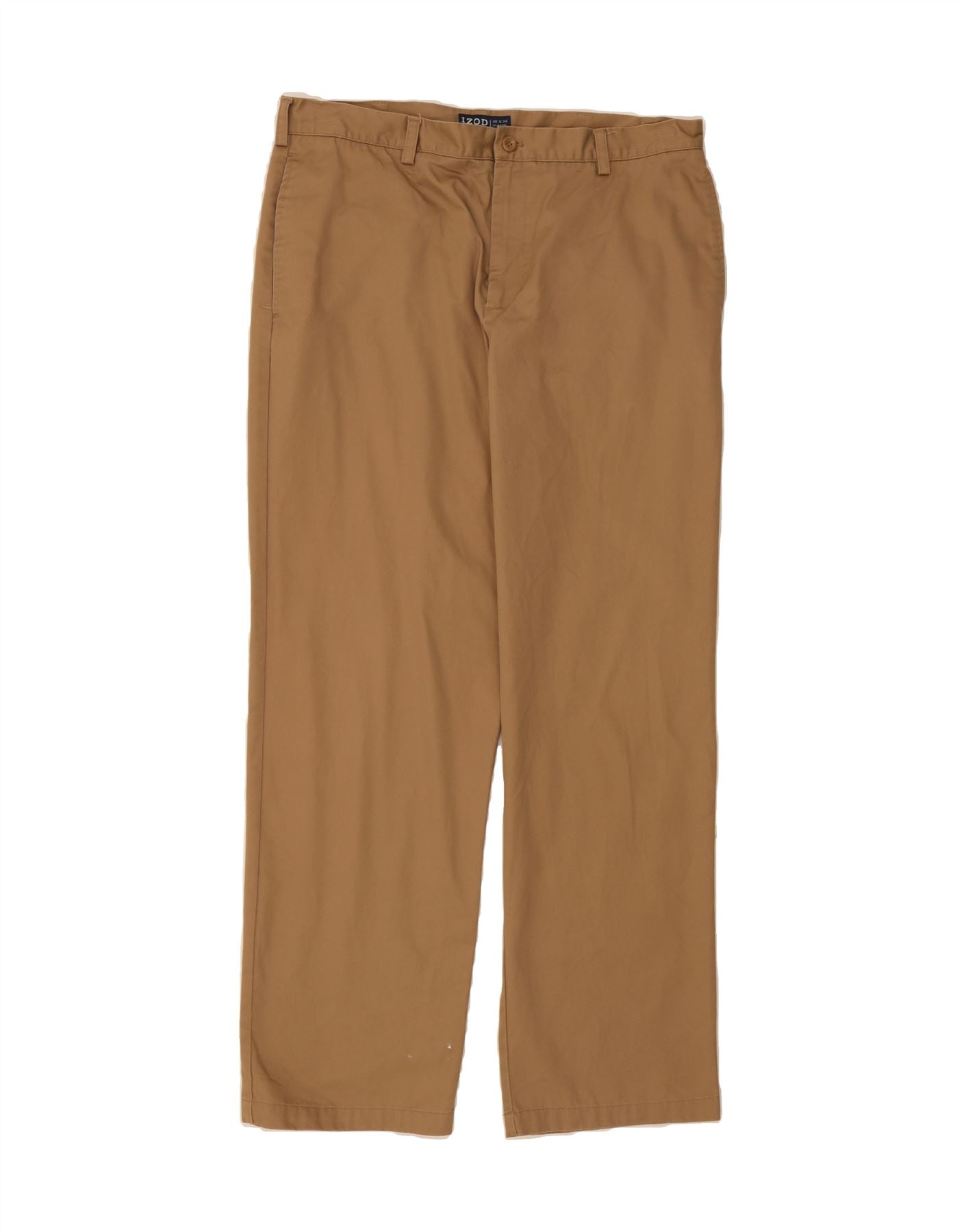 IZOD Mens Classic Fit Straight Chino Trousers W38 L34 Brown Cotton