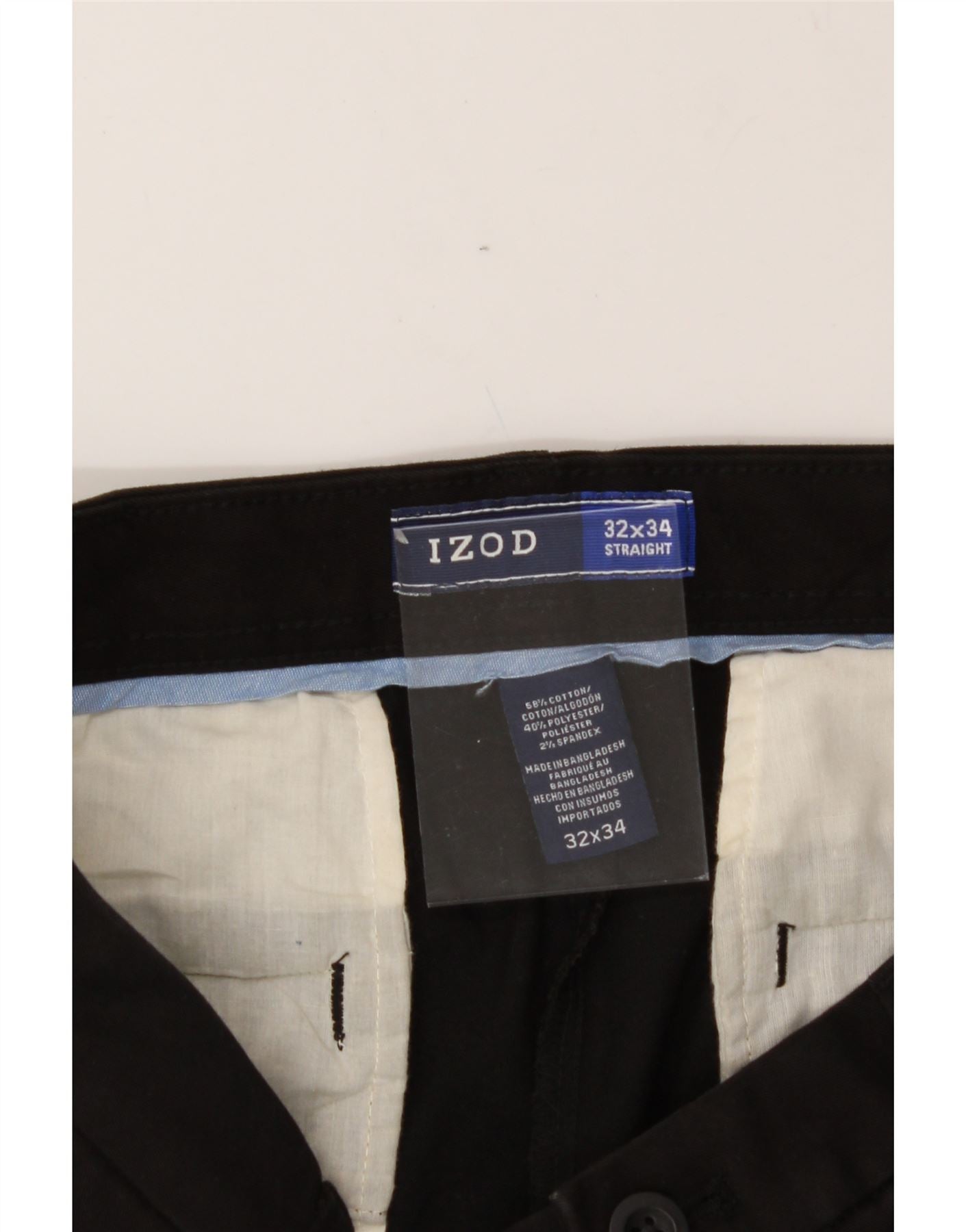 IZOD Mens Straight Chino Trousers W32 L34 Black Cotton